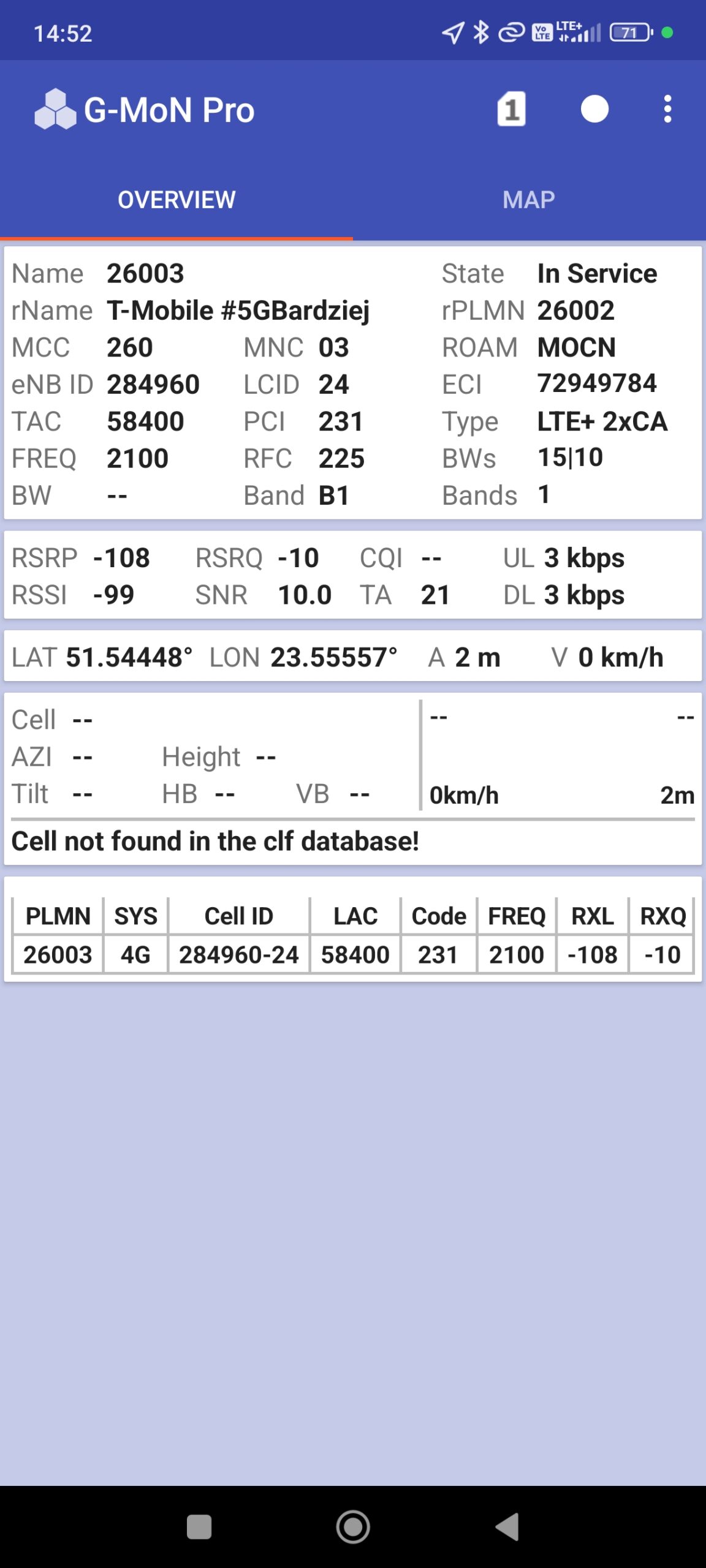 Operator z wyróżnikiem 260-03 wykorzystuje w LTE2100 [10MHz] inną nośną, aniżeli „w standardzie”, w pozostałej części kraju.