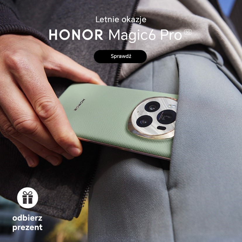 Model HONOR Magic6 Pro, kosztujący 5999 zł przy zakupie w elektromarketach oraz sieciach Play i Plus dostępny jest w zestawie z tabletem HONOR Pad 8 o wartości 1199 zł. Podobnie jak w przypadku składnego Magic V2 w sieci Orange smartfon jest oferowany z dodatkiem szybkiej ładowarki, tym razem o mocy 100W, która jest w stanie zasilić laptopa. Zaprezentowany w lutym HONOR Magic6 Pro to jeden z najlepiej ocenianych smartfonów w niezależnym rankingu DXOMARK – we wszystkich kategoriach, czyli w aparacie, selfie, audio, wyświetlaczu oraz baterii model ten cały czas zajmuje 1 lub 2 miejsce. HONOR Magic6 Pro został wyposażony w potrójny system aparatów Falcon nowej generacji, dzięki którym każdy może zrobić profesjonalne zdjęcia wysokiej jakości. Dodatkowo smartfon został wyposażony w funkcję HONOR AI Motion Sensing Capture, która automatycznie uchwyci najważniejsze momenty i doskonale poradzi sobie w fotografii sportowej.