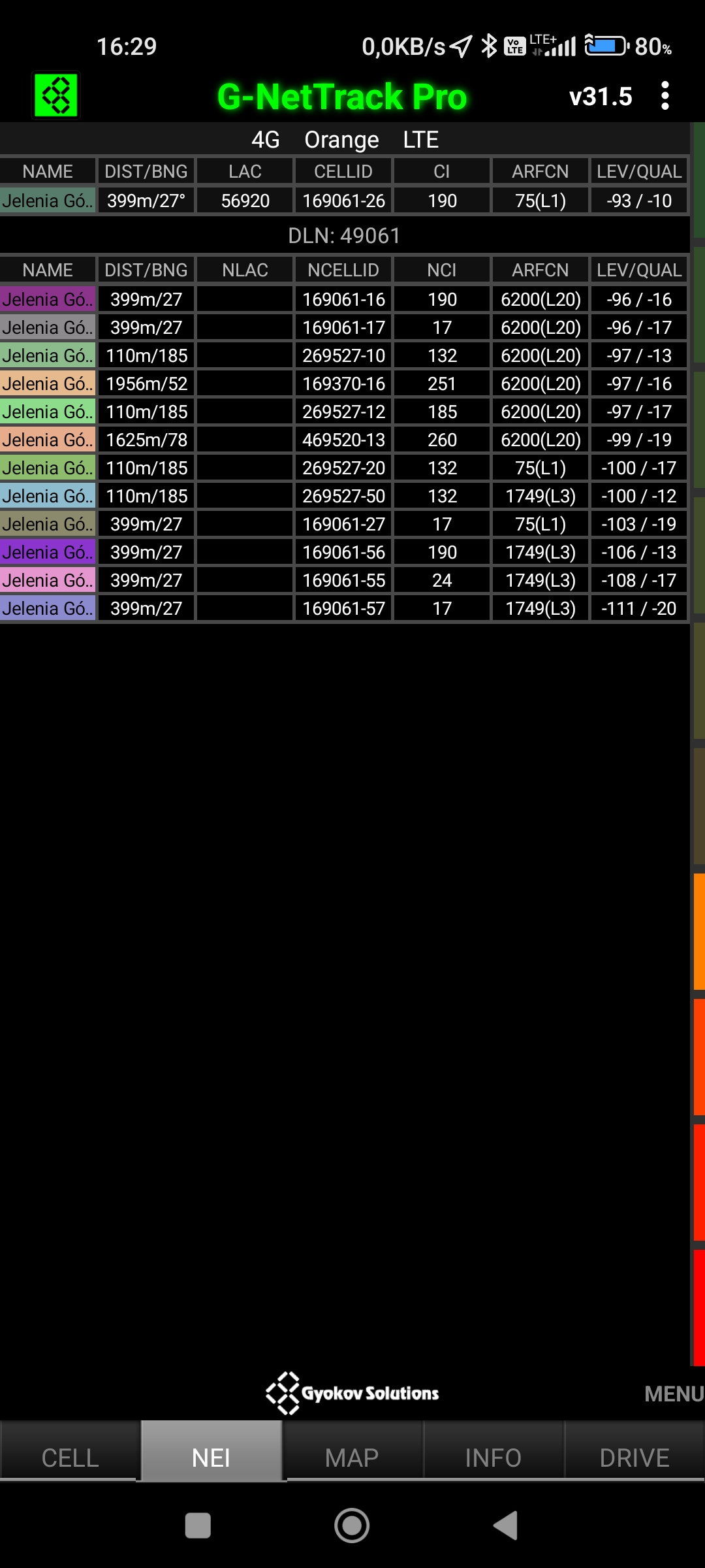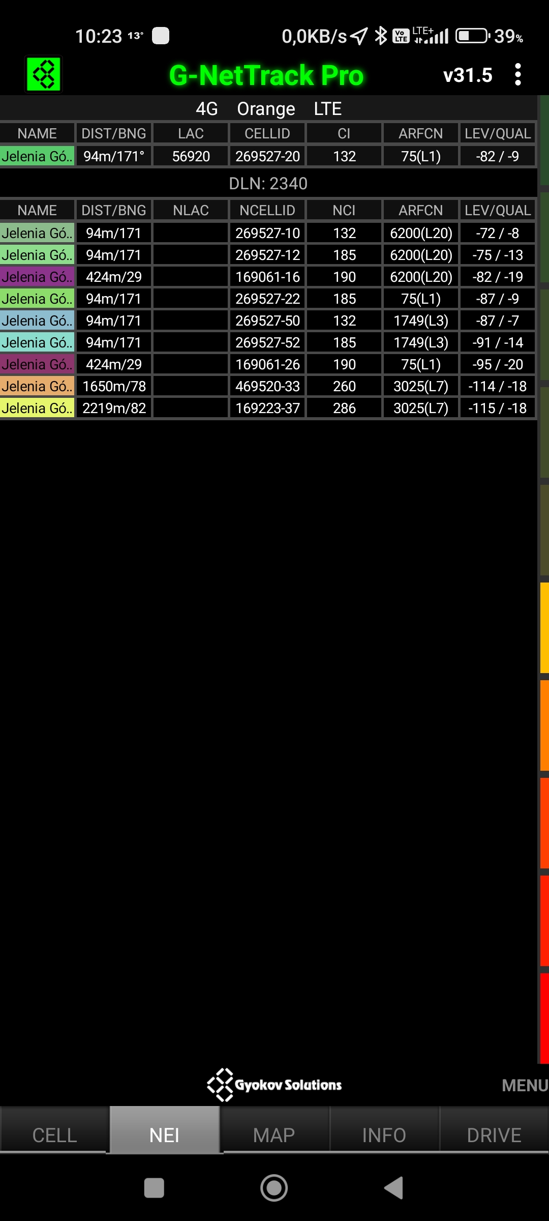 Wracając do tematu jakości parametryzacji sieci Play, a właściwie w większości braku tej parametryzacji – poniżej zrzuty ekranów danych aplikacji testowych w segmencie LTE dla Orange i Play celem porównania, jak można coś zrobić dobrze, a jak można zatracić możliwości, które się posiada dzięki inwestycjom naprawdę dużej skali.
