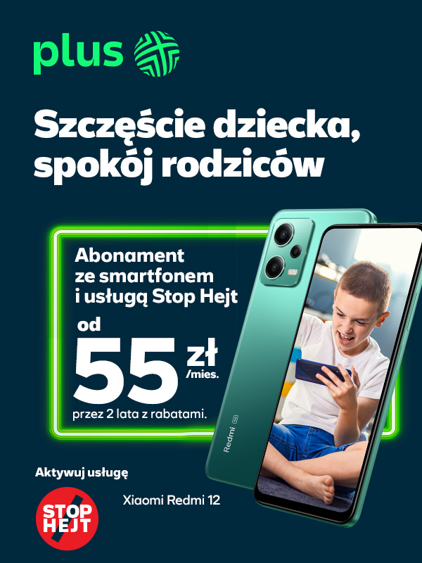 Powrót do szkoły już niebawem. Z tej okazji Plus udostępnia dedykowaną i chroniącą najmłodszych ofertę obejmującą abonament telefoniczny z usługą Stop Hejt wraz z telefonem od 55 zł miesięcznie. W obecnych czasach hejt to niestety bardzo powszechne zjawisko. Jak wynika z raportu UKE z 2021 roku około 40% dzieci w przedziale od 7 do 14 lat doświadczyło negatywnych zjawisk takich jak hejt, gnębienie czy kontakt nieodpowiednimi treściami w internecie. Badania wskazują, że cyberprzemoc jest jednym z czynników przyczyniających się do pogorszenia zdrowia psychicznego młodych ludzi.