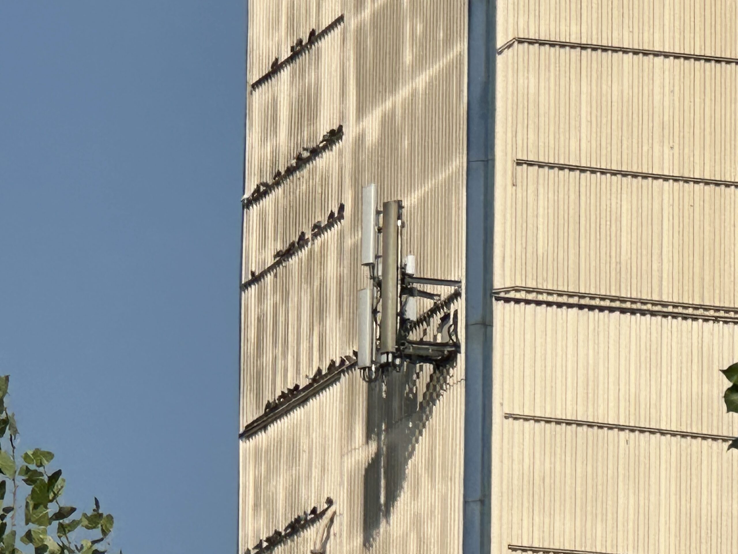 Stacja po rozbudowie o 3 sektory LTE2600 i 5G-2100. Do obecnych tribandów Kathrein 742272 + Cellmaxów 120115 na sektor dołożono kolejne Cellmaxy 120115 (teraz po 3 anteny sektorowe na sektor, łącznie 9). Na dachu nadal znaczna ilość anten linii radiowych. W ostatnim czasie operator raportował 15 sztuk.