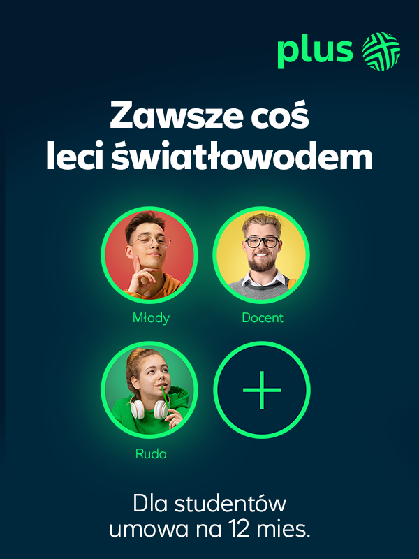 Wraz ze zbliżającym się rozpoczęciem roku akademickiego wielu studentów poszukuje stabilnego i szybkiego internetu stacjonarnego gwarantującego efektywną naukę oraz rozrywkę w najwyższej jakości. W Plusie mogą oni skorzystać z oferty Plus Światłowód, która zapewnia niezawodny dostęp do sieci w niskiej cenie i z umową na krótki czas – tylko na 12 miesięcy. Dostęp do szybkiego internetu jest niezbędny w akademickiej codzienności, a ze względu na częste zmiany miejsca zamieszkania studenci nie chcą wiązać się długimi umowami. Dlatego w Plusie mogą oni wybrać ofertę dopasowaną do ich potrzeb – Plus Światłowód z umową na 12 miesięcy już od 19 zł/mies. Użytkownicy posiadający lub wybierający abonament głosowy Plusa za min. 44 zł/mies. lub telewizję od Polsat Box za min. 19 zł/mies. przy zakupie Plus Światłowód z umową na rok zapłacą od: