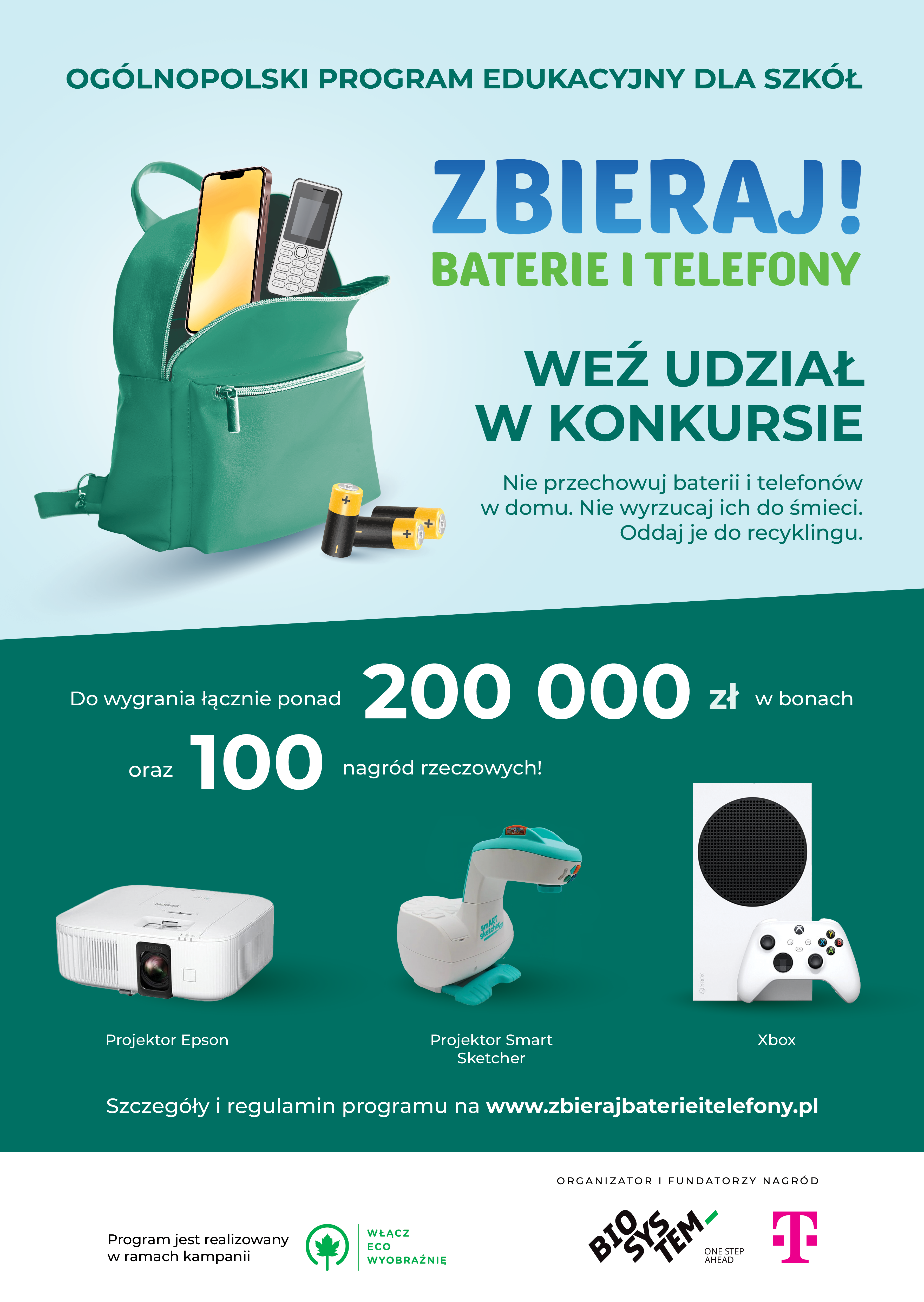 W tegorocznej edycji konkursu uczestnicy mają szansę zdobyć wyjątkowe nagrody. W puli nagród znalazły się m.in. stacje rowerowe ze stojakami, konsole xBox, piłkarzyki, a także edukacyjne roboty i projektory. Dodatkowo nauczyciele mogą liczyć na bony zakupowe o wartości 400 zł. Udział w konkursie jest niezwykle prosty – wystarczy zarejestrować swoją placówkę na stronie internetowej programu. Wszystkie zgłoszone szkoły i przedszkola otrzymają niezbędne materiały edukacyjne oraz specjalne pojemniki do zbiórki telefonów i baterii.
