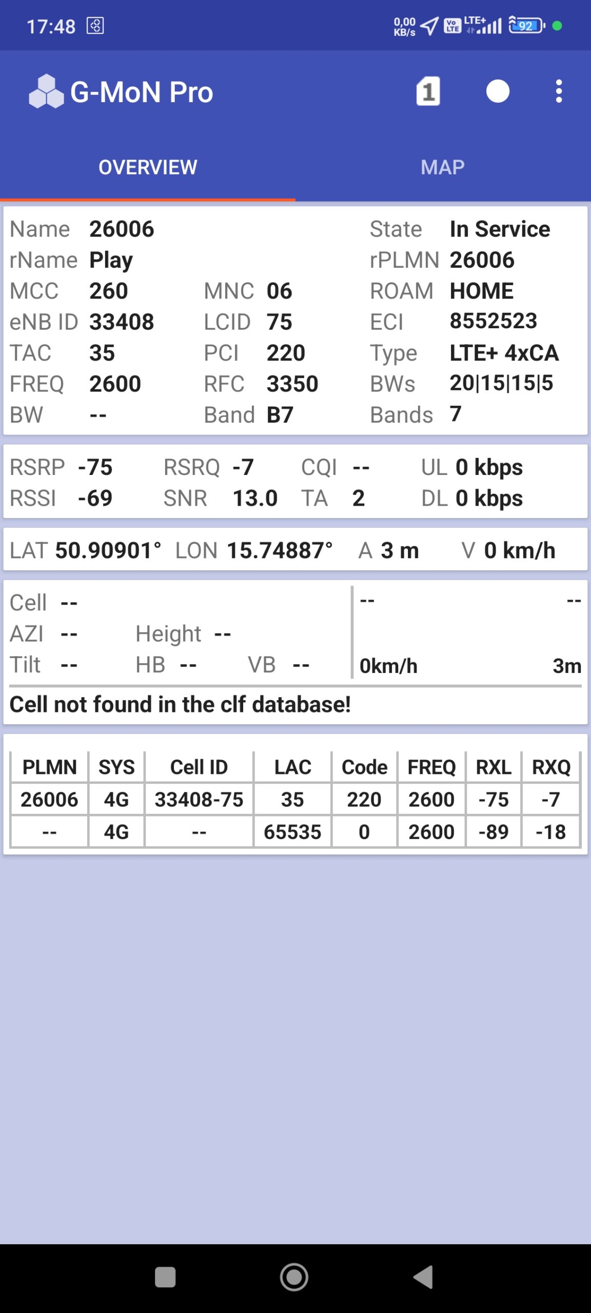 Poniżej wyniki testów speedtest na dwóch sektorach w świetle radiowym stacji. Warto zwrócić uwagę na parametry SNR, które w tym przypadku nie świadczą o obciążeniu stacji, ponieważ w sąsiedztwie tego nie widać, ale są wynikiem albo błędów lub zaniechań w parametryzacji albo zakłóceń radiowych, które powodują, że jest jak jest. Dodać należy, że wiązki sygnału na każdym sektorze z jakiegoś powodu są bardzo wąskie, a stabilność pokryciowa praktycznie zerowa. Zarówno przy stacji, jak i w nieco większej odległości tam, gdzie sygnał sieci jest logicznie oczekiwany. Żeby zrealizować testy musieliśmy podejmować kilka prób, żeby terminal „zatrzymał się radiowo” na komórce stacji przy ul. Różyckiego 5. Wszystko działa na „chybił-trafił”, zaś dobrą lokalizacyjnie inwestycję dziś nie można ocenić inaczej, jak efekt niedbalstwa, bubel i kolejny przykład wyrzuconych pieniędzy w przysłowiowe błoto. Jeśli swego czasu „rękami” podwykonawcy-specjalisty udało się zrobić audyt stacji operatora w Jeleniej Górze przy Pl. Kościelnym 1 i tę stację ustabilizować – polecamy podobne czynności dla ostatnio uruchomionych stacji w mieście, czyli lokalizacji: