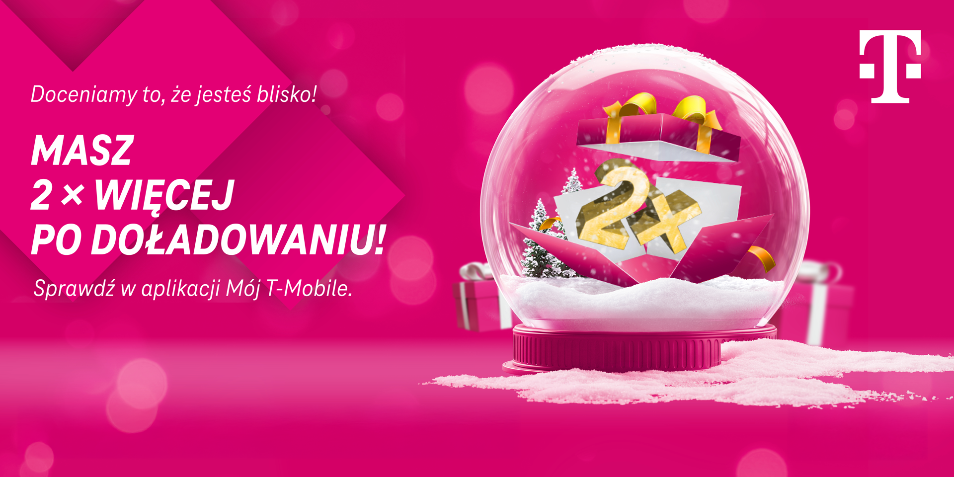 W T-Mobile każda okazja jest dobra, by dzielić się prezentami z klientami. Dlatego na mikołajki dla użytkowników oferty T-Mobile na kartę mamy prezent, i to podwójny! Ci, którzy doładują konto w aplikacji „Mój T-Mobile” od 6 do 8 grudnia, otrzymają podwójne doładowanie, które mogą wykorzystać na dowolne usługi. Każdy użytkownik taryfy GO! w ofercie T-Mobile na kartę, który w okresie promocji doładuje swoje konto za pomocą aplikacji „Mój T-Mobile” kwotą od 35 zł do 200 zł, otrzyma jednorazowy bonus odpowiadający wartości doładowania. Oznacza to, że doładowując konto na przykład za 50 zł, użytkownik otrzyma dodatkowe 50 zł – i tak aż do maksymalnej kwoty bonusu wynoszącej 200 zł! Środki z bonusu są automatycznie sumowane z kwotą doładowania i stanowią wspólną pulę na koncie. Dzięki temu użytkownicy mają pełną swobodę w wykorzystaniu otrzymanych środków. Mogą je tym samym wykorzystać na dowolne usługi.