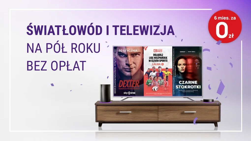 Play rozpoczyna 2025 rok ofertą internetu światłowodowego i telewizji bez opłat przez sześć miesięcy. To propozycja, która zadowoli zarówno miłośników filmów i seriali, jak i fanów sportu czy gamingu. Nowa oferta usług dla domu Play przypadnie do gustu wszystkim, którzy chcą się cieszyć superszybkim łączem internetowym oraz szeroką gamą kanałów telewizyjnych i platform VOD przez sześć miesięcy za 0 zł. Łącząc superszybki światłowód aż do 5 Gb/s z telewizją, klienci zyskają dostęp do najszerszego wachlarza treści rozrywkowych w postaci serwisów streamingowych oraz pakietów programów: