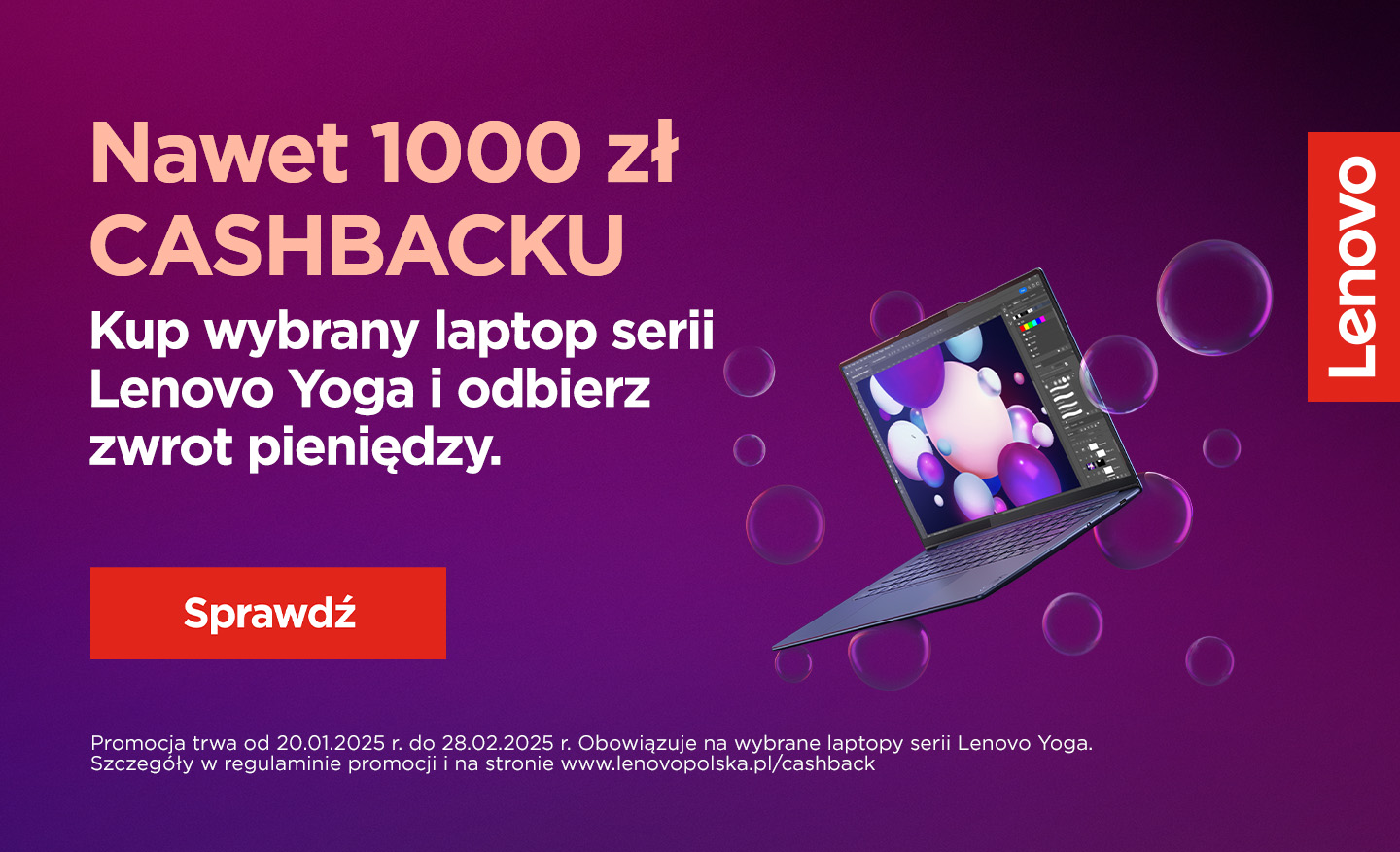 20 stycznia 2025 r. – Lenovo Polska zaczęło nowy rok z przytupem: przygotowało wyjątkową ofertę promocyjną dotyczącą laptopów z serii Yoga. Osoby, które zdecydują się na zakup wybranego modelu, mogą otrzymać nawet do 1000 zł zwrotu na konto. Promocja trwa do 28 lutego bieżącego roku.