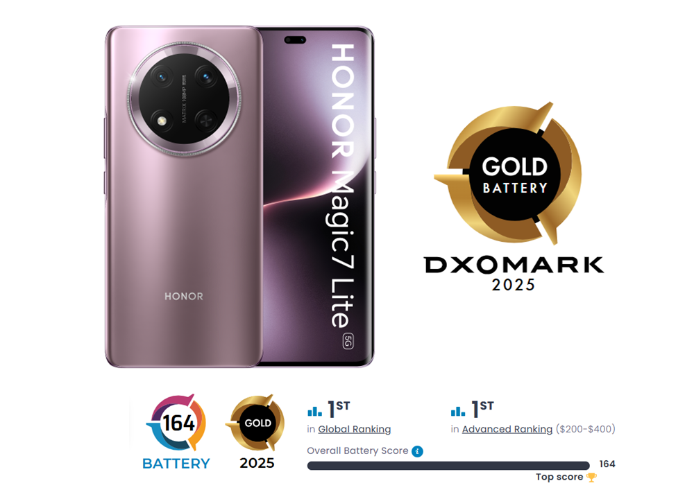 HONOR Magic7 Lite otrzymał złote wyróżnienie DXOMARK i zajął pierwsze miejsce pod względem baterii