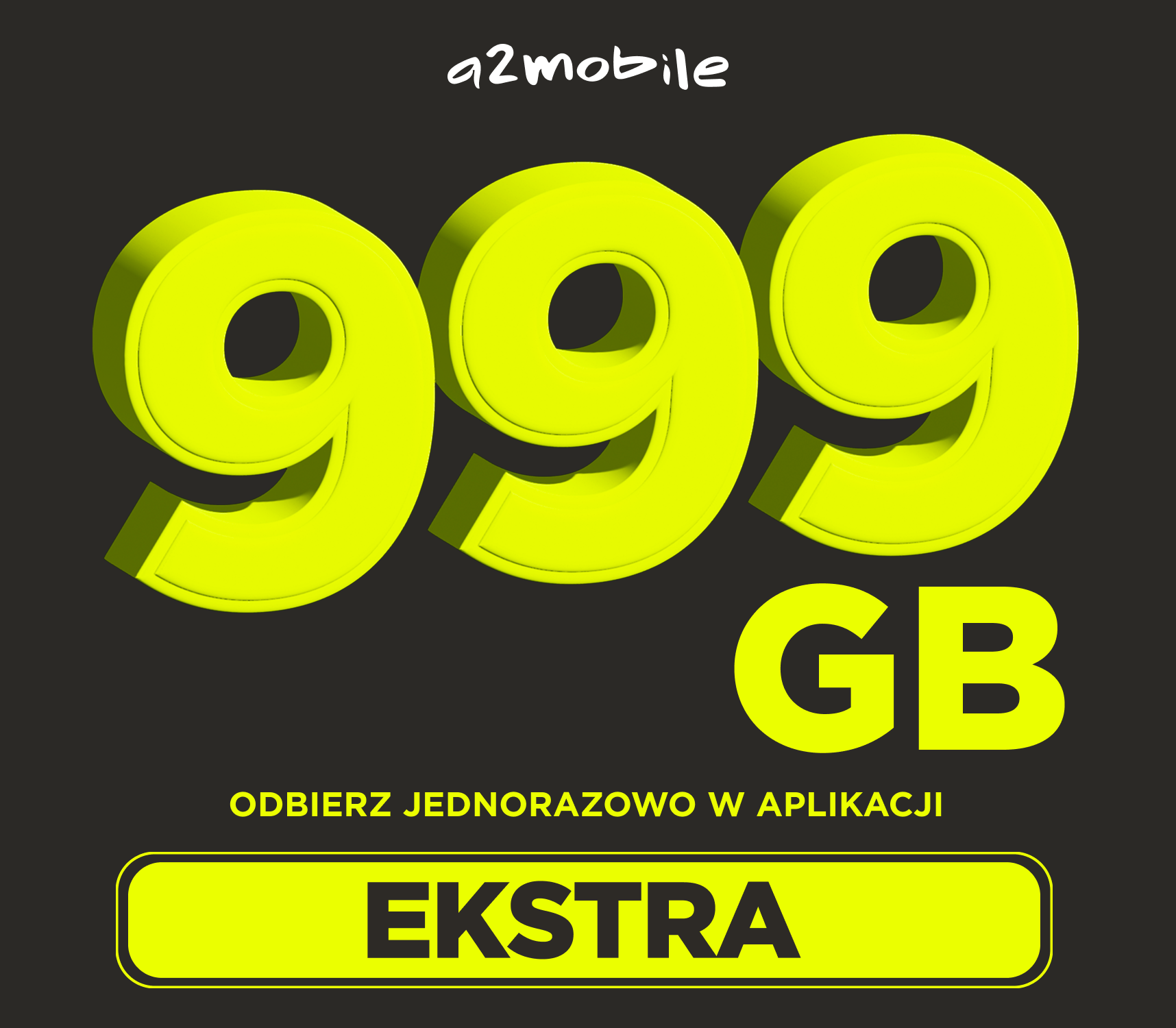 Pobierz aplikację moje.a2mobile lub przejdź na https://moje.a2mobile.pl i odbierz ekstra pakiet 999 GB.