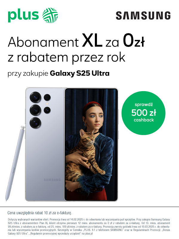 Wiosna to czas zmian i nowych możliwości. Dla wszystkich, którzy rozważają wymianę telefonu na nowszy model, Plus przygotował specjalną ofertę. Wybierając Samsung Galaxy S25 Ultra w Plusie można otrzymać 500 zł zwrotu. Dodatkowo, wybierając pakiet XL, miesięczna opłata abonamentowa będzie wynosiła 0 zł z rabatem przez rok. Dni stają się coraz dłuższe, słońce świeci mocniej, a w powietrzu czuć nową energię. Wiosna to czas pełen nowych wyzwań i ekscytujących możliwości. Może to być np. wymiana telefonu na taki, który sprawi, że nasze życie stanie się prostsze. Dzięki Samsungowi Galaxy S25 Ultra można zyskać osobistego asystenta głosowego AI, a kupując go w Plusie – 500 zł zwrotu i abonament przez rok za 0 zł z rabatem za e-fakturę.