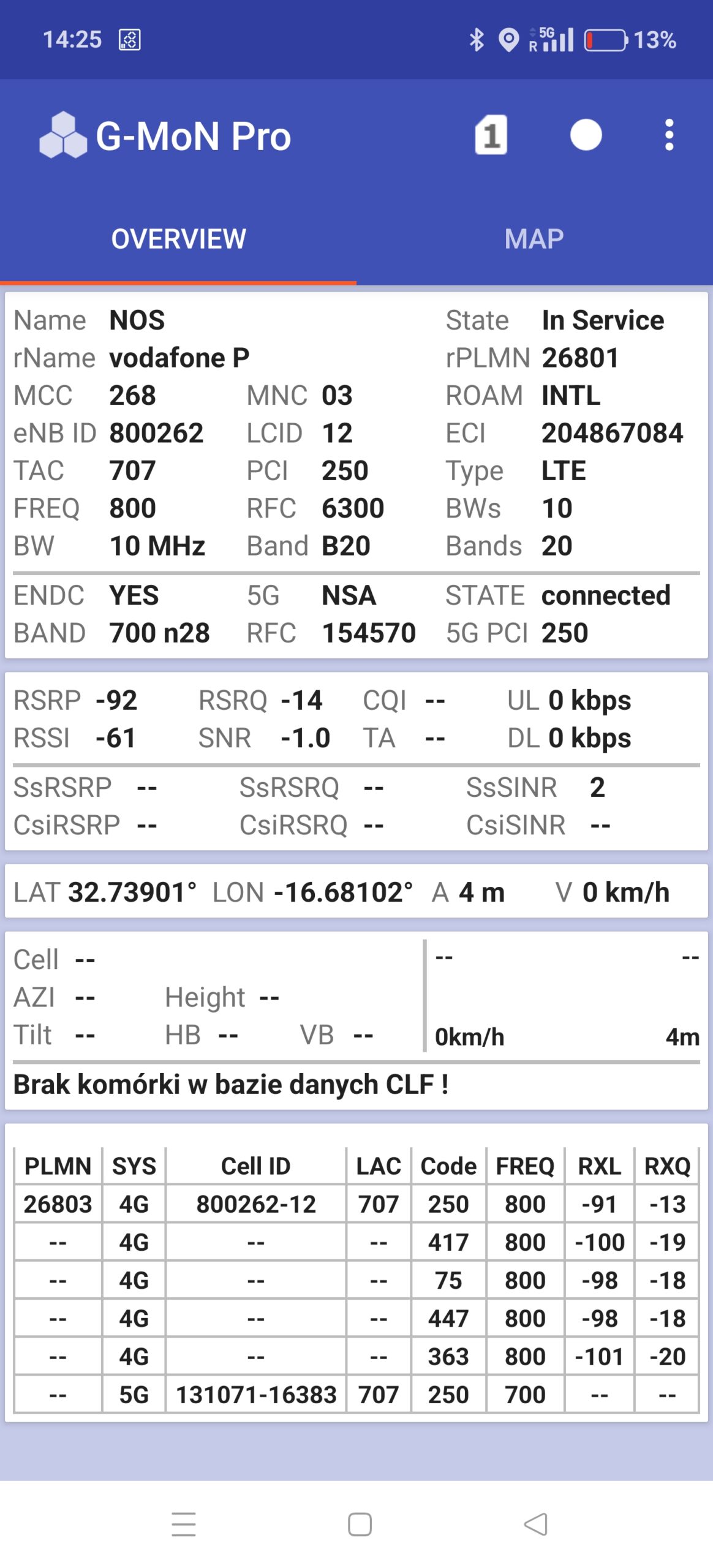 Dla zainteresowanych – krótka relacja z Półwyspu Świętego Wawrzyńca (Ponta de São Lourenço), najbardziej wysuniętego punktu Madery. Dla klientów sieci w roamingu dostępne są do transmisji danych dwie technologie: LTE oraz 5G w paśmie 700MHz. Jak widać – już z drugiego testu na Maderze – jest to co prawda pasmo zasięgowe, niemniej prędkości do imponujących nie należą. Fakt, że stacja bazowa operatora, którego sygnał sieci odebraliśmy znajdowała się kilka kilometrów dalej.