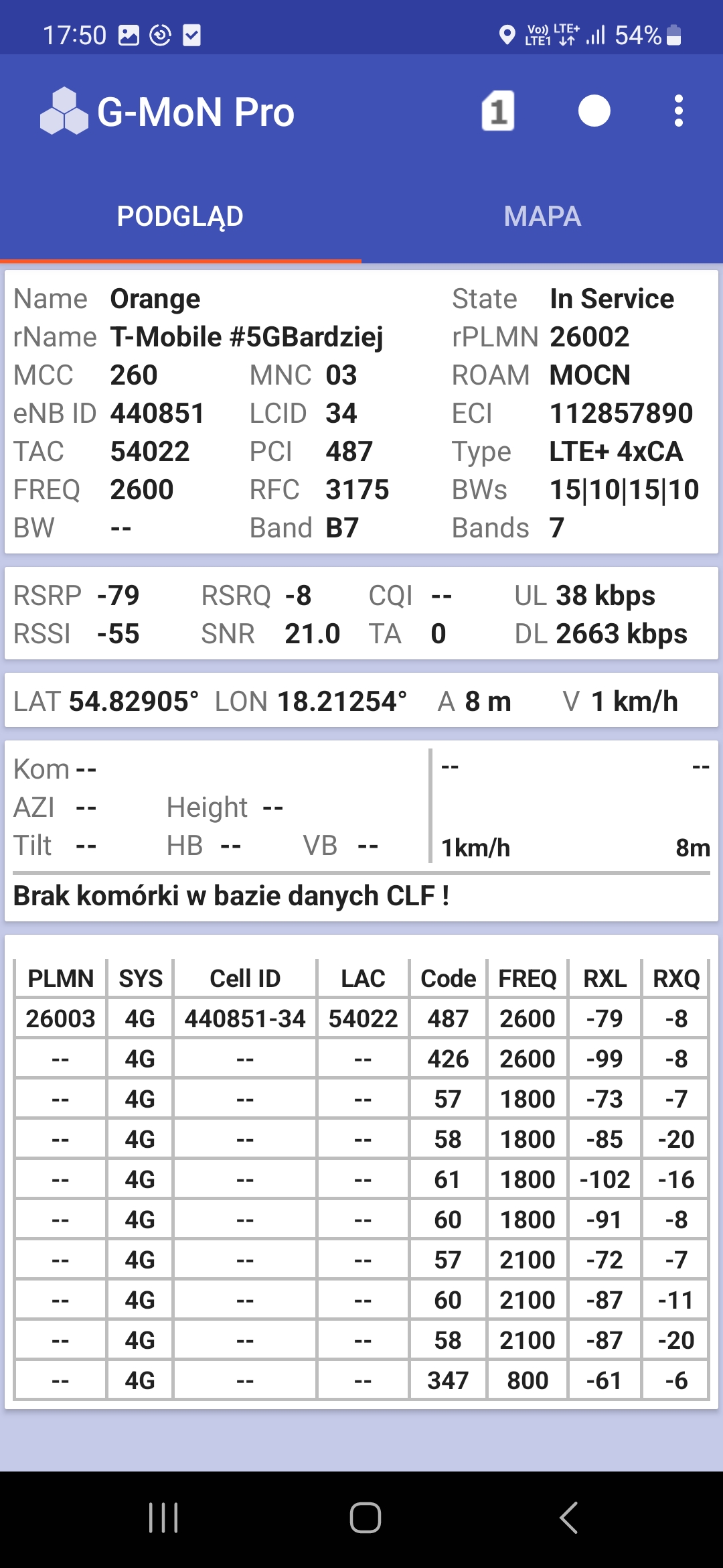 Od naszego Czytelnika otrzymaliśmy komplet pomiarów LTE w sieci T-Mobile z każdego sektora stacji w nadmorskiej Karwii. Lokalizacja: ul. Kolorowa 2, wieża kościoła parafii pw. Św. Antoniego Padewskiego. Stacja jest własnością Orange. Jak uzupełnia nasz Informator: niestety algorytm QoS w ofercie T-Mobile na kartę po 4 pomiarze speedtest Ookla ograniczył prędkość do nieco ponad 220 Mbps, przy czym w pierwszym momencie wynik poszybował pod 300 Mbps, więc na pewno byłoby lepiej. Stacja systemowo jest przygotowania pod 5G (model MORAN).