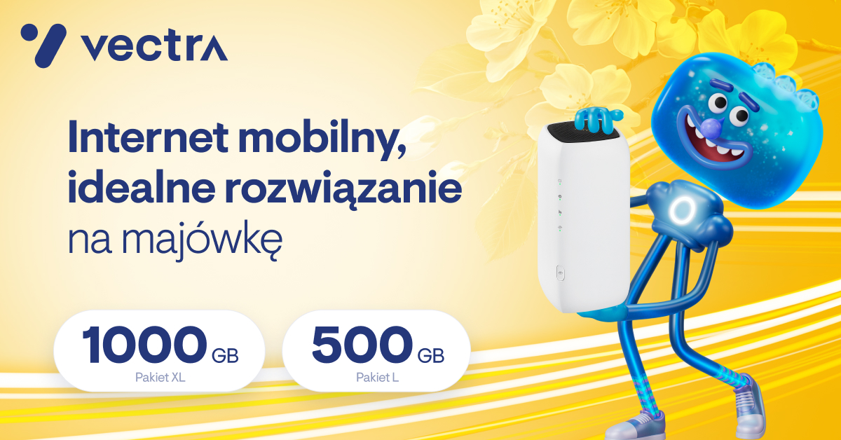 Z myślą o zbliżającym się długim weekendzie majowym Vectra przygotowała specjalną ofertę na Internet mobilny z pakietami 500 GB oraz 1000 GB. Klienci, którzy z niej skorzystają, przez pierwsze trzy miesiące zapłacą odpowiednio 50% i 68% taniej. Promocja obowiązuje tylko do końca kwietnia. Z wiosennej promocji na Internet mobilny od Vectry z okresem zobowiązania 23 miesiące skorzystać mogą zarówno nowi, jak i obecni Klienci. Abonamenty Internetu mobilnego z trzema miesiącami taniej dostępne są w różnych wielkościach: 500 GB i 1000 GB tak, by spełniały wymagania każdego Klienta. Dodatkowo, operator oferuje możliwość skorzystania z mobilnego routera 5G z Wi-Fi 6 z pełnym wsparciem serwisowym przez cały czas trwania umowy. Dzięki temu Klienci Vectry będą mogli cieszyć się połączeniem z Internetem, gdziekolwiek się znajdują – w domu, w podróży, czy podczas pracy zdalnej.