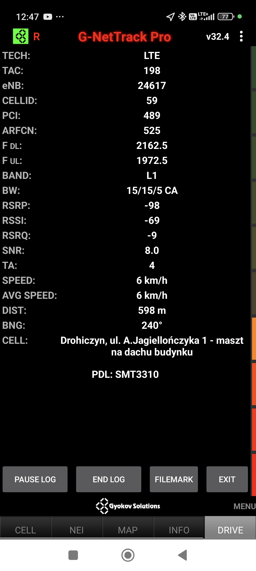 Prezentujemy jakość transmisji internetu mobilnego w Drohiczynie. Test realizowano w sąsiedztwie stacji benzynowej MOL.