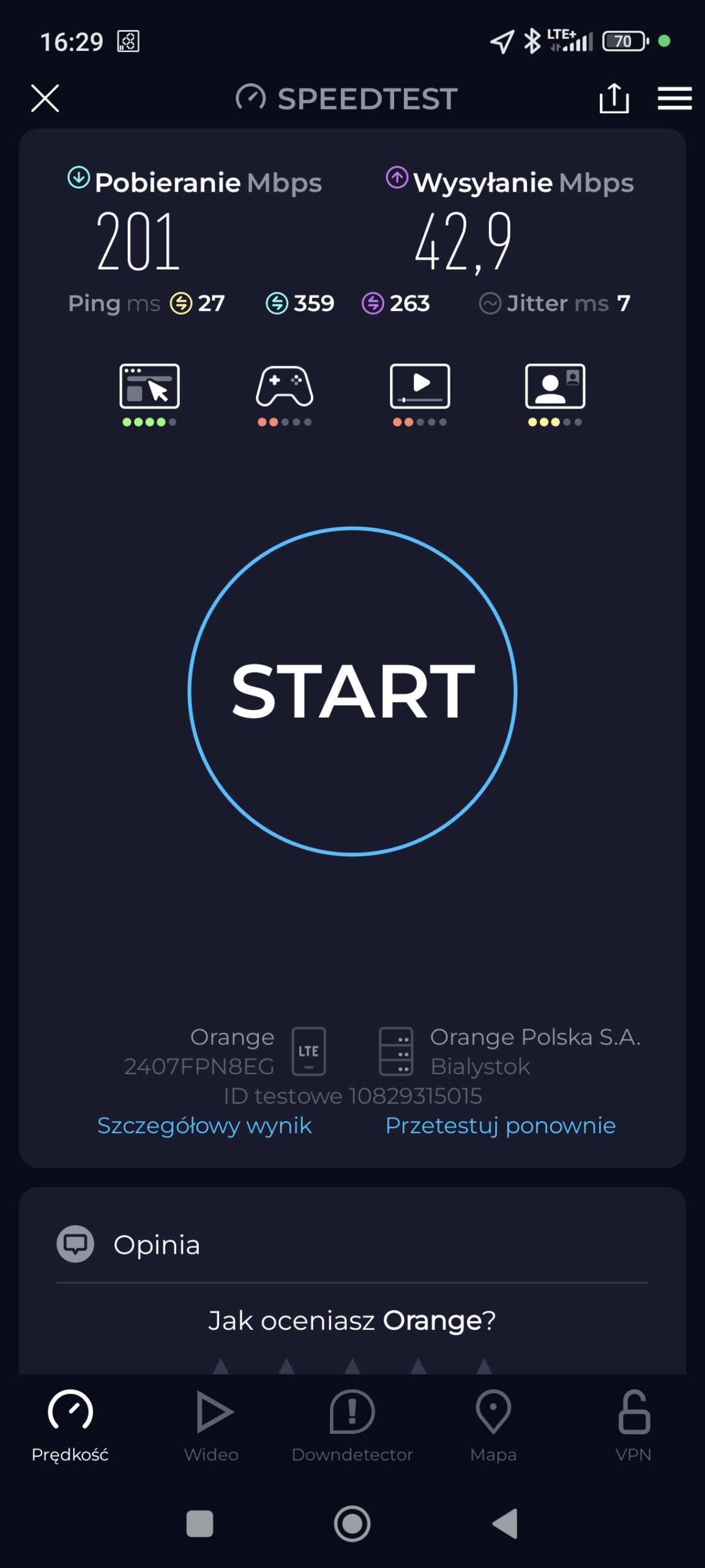 Prezentujemy jakość transmisji danych operatorów sieci komórkowych w turystycznej miejscowości Narewka na Podlasiu. Testy realizowano w sąsiedztwie Pensjonatu – Restauracji Gościniec Bojarski