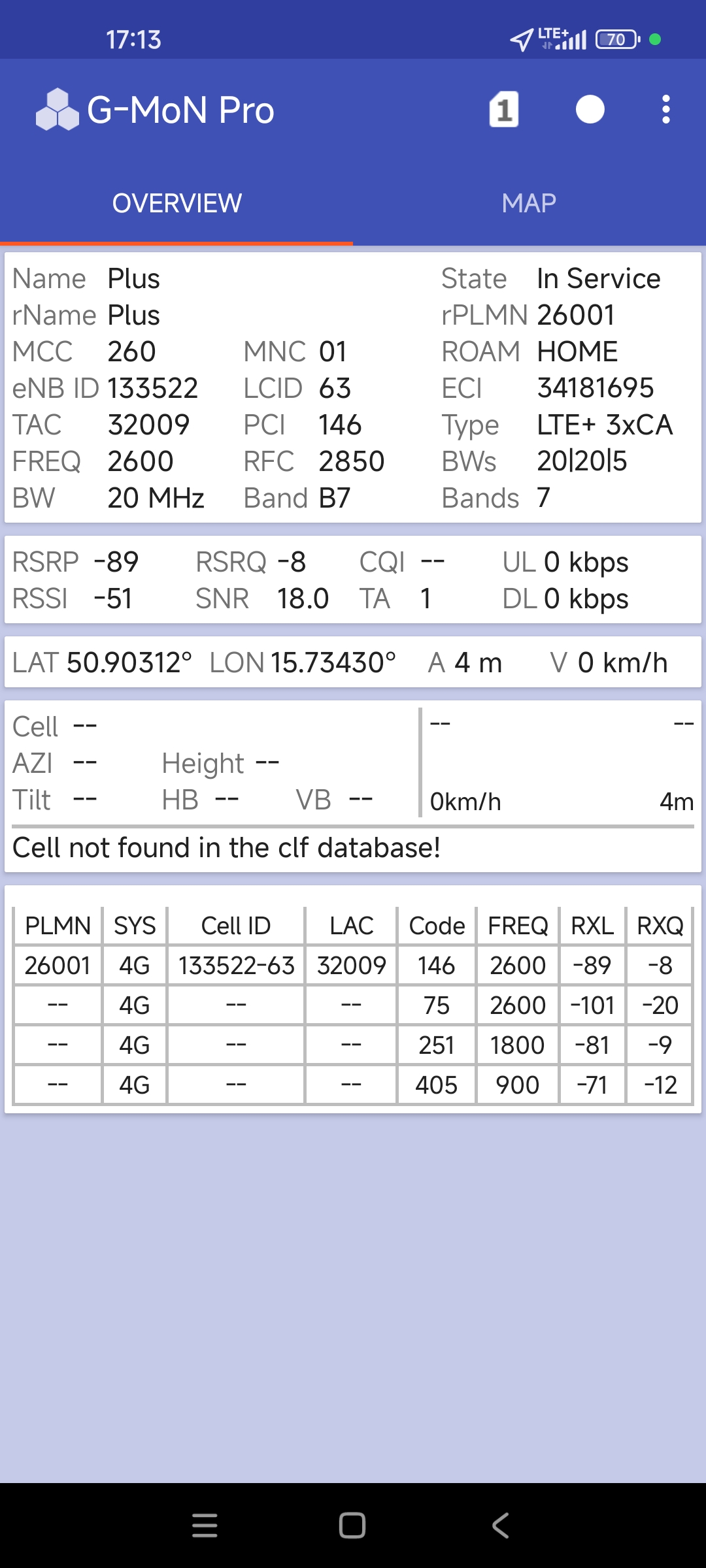 Wynik testu LTE mówi sam za siebie. Operatorowi bardzo brakuje kolejnych stacji w śródmieściu, a planowana stacja przy ul. 1-go Maja 27 wciąż pozostaje wyłącznie właśnie jako planowana. W punkcie pomiarowym terminal otrzymał sygnał sieci ze stacji odległej, pracującej na osiedlu Zabobrze, przy Al. Jana Pawła II 21, na kominie EC.