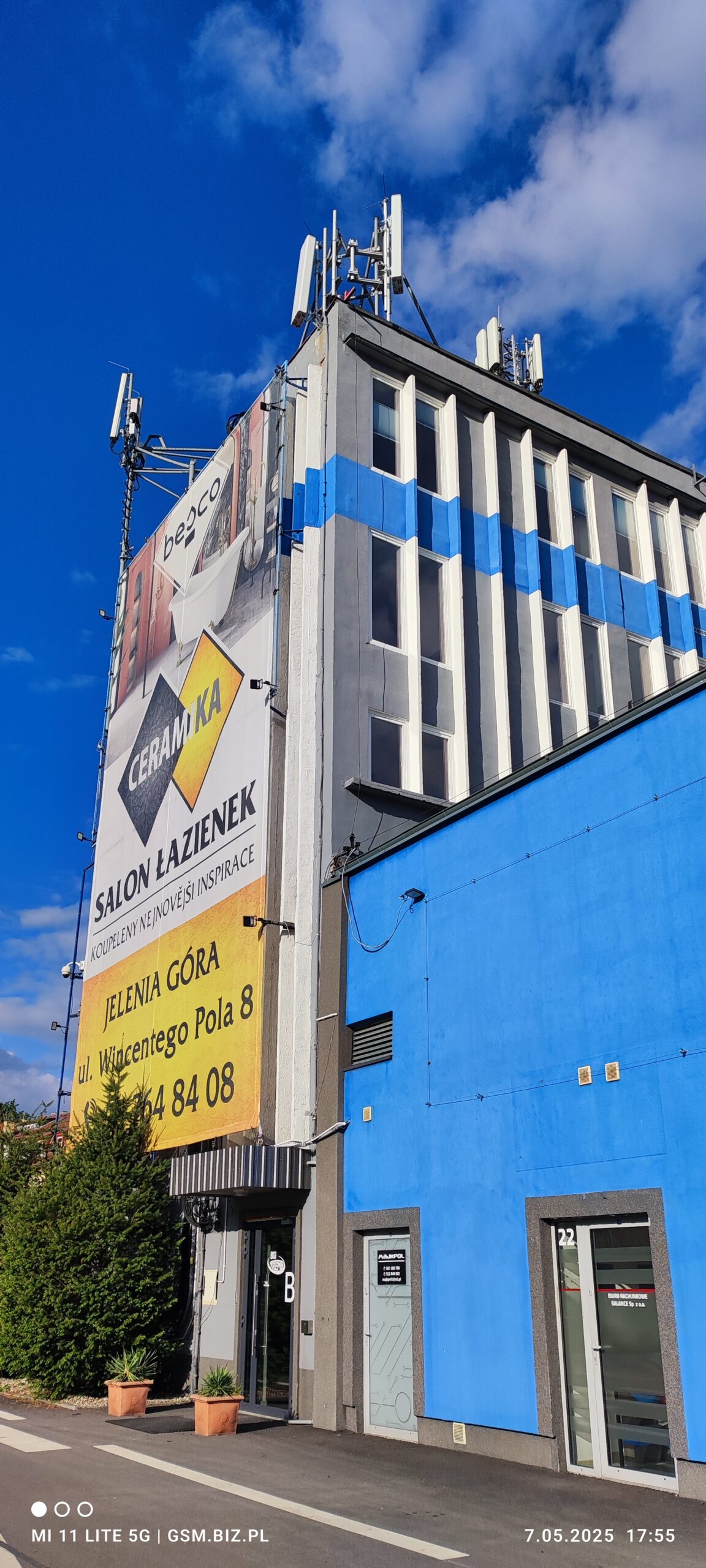 Play przebudował stację bazową w Jeleniej Górze, przy ul. Sobieskiego 53, na dachu budynku BGI ZREMB. Modernizację śmiało można określić nową inwestycją, ponieważ komplet dotychczasowych zestawów antenowych (po 3 na sektor) zdjęto, zainstalowano nowe wsporniki, na praktycznie zupełnie innych azymutach, wymieniono również komplet anten sektorowych.