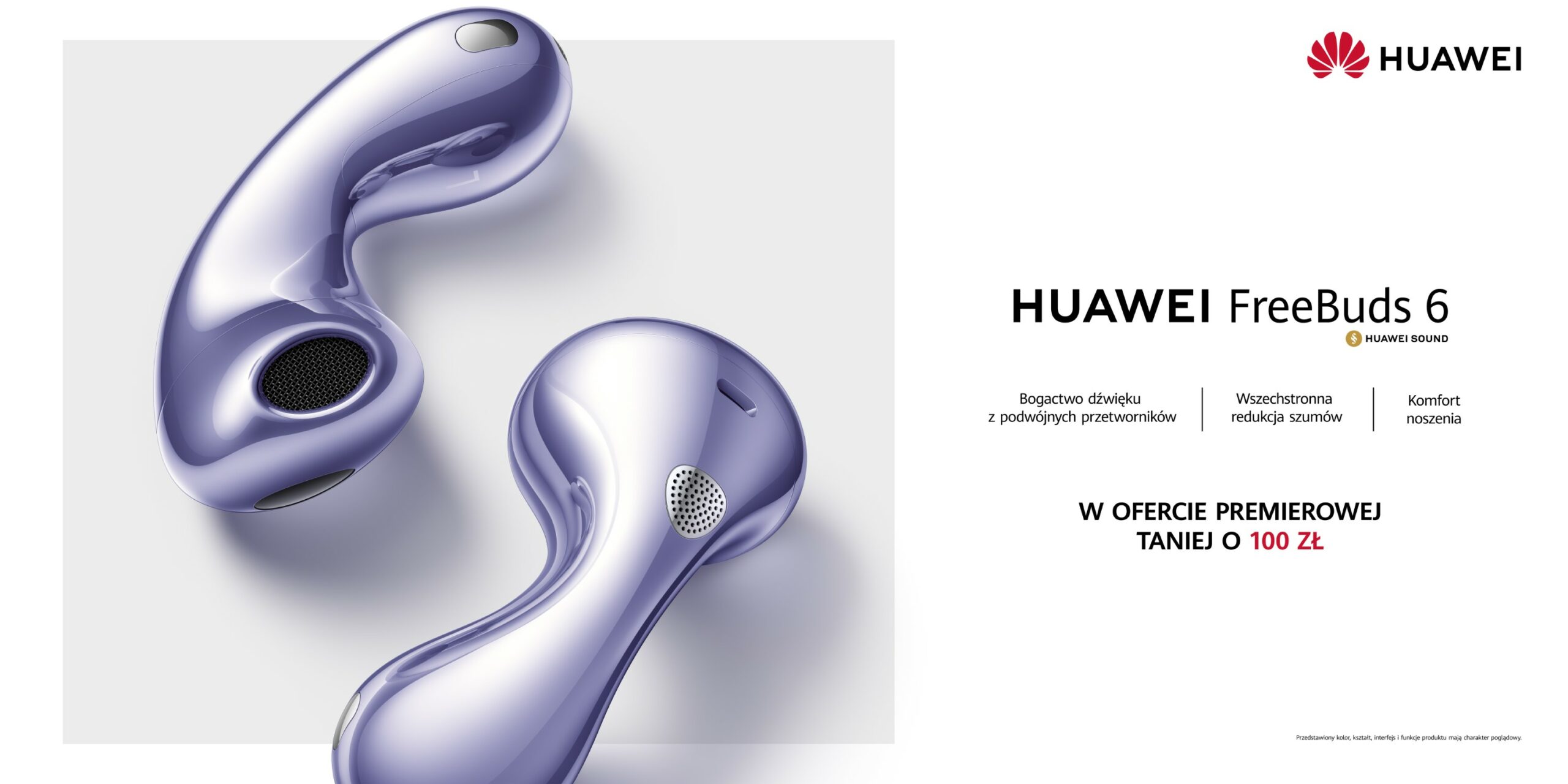 Sugerowana cena detaliczna HUAWEI FreeBuds 6 to 699 zł. W okresie od 15 maja do 22 czerwca 2025 r. dostępne będą w ofercie premierowej, w ramach której ich sugerowana cena detaliczna wyniesie 599 zł. Słuchawki występują w 3 kolorach do wyboru: białym, czarnym oraz fioletowym, a kupić można je w sieciach handlowych Media Expert, RTV Euro AGD, Media Markt, x-kom, Komputronik, Neonet oraz w oficjalnym sklepie huawei.pl i w Strefie Marki na Allegro. Do HUAWEI FreeBuds 6, zakupionych w tych miejscach, dodawana jest w prezencie usługa HUAWEI Loss Care, która upoważnia do wymiany zagubionej słuchawki z 50-procentowym rabatem w ciągu roku od zakupu urządzenia. Podane ceny są cenami rekomendowanymi. Oferta może różnić się w zależności od kanału sprzedaży oraz może ulec zmianie. Szczegóły ofert dostępne są u Sprzedawców.