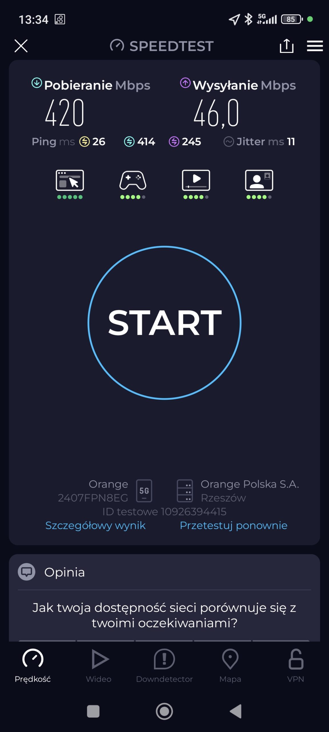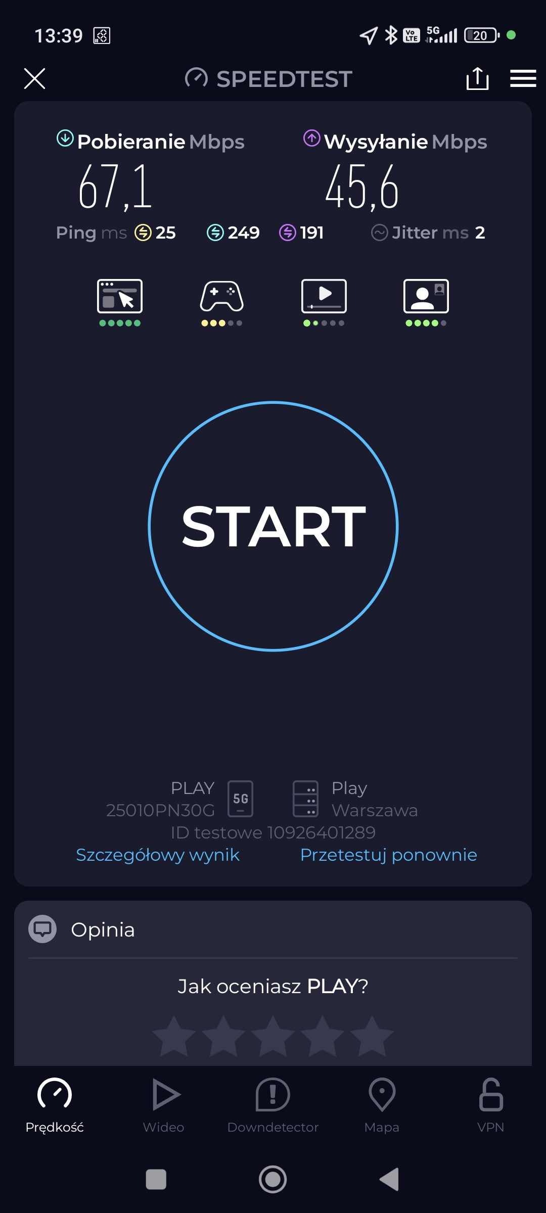 Zainteresowanym prezentujemy jakość internetu mobilnego operatorów w bezpośrednim sąsiedztwie dworca kolejowego Rzeszów Główny. Testy przeprowadzono dla wszystkich operatorów, zarówno w segmencie LTE, jak i 5G. Poza Plusem – pozostała trójka w 5G oferuje klientom 5G band C.