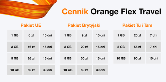 Cennik promocyjnych pakietów w Orange Flex Travel wygląda następująco: