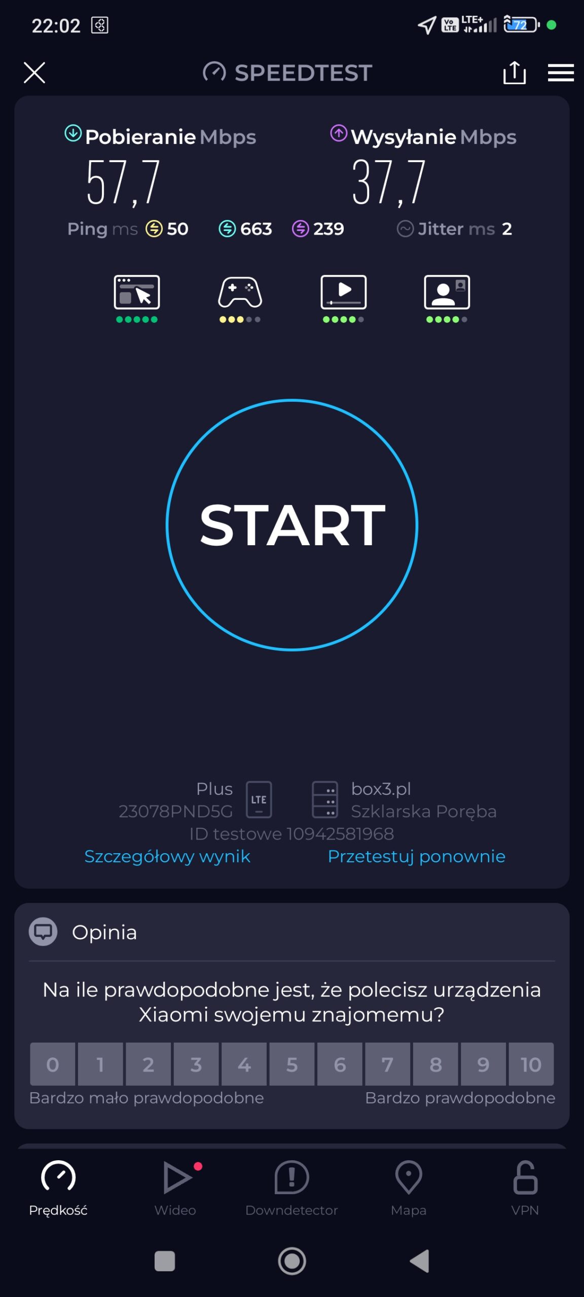 Zrealizowaliśmy objazdówkę wokół nowej stacji Plusa, przeprowadzając kilkanaście testów speedtest w różnych odległościach od stacji i można powiedzieć, że dzisiejsza efektywność pokryciowa jest zadziwiająco dobra. Problemem jest jednak upload w dalszej odległości od stacji, który przy całkiem sensownym download rzędu 15Mbps w LTE – nierzadko wynosi niecały 1Mbps! Wspomnieliśmy o „zadziwiająco dobrej efektywności pokryciowej” stacji i takie można odnieść wrażenie. Jest jednak tzw. „ale”… To „ale”, to po prostu przełożenie działającej stacji na to, co operator ma w dyspozycji w bezpośrednim sąsiedztwie. A śmiało można powiedzieć, że… NIC! Skoro nie ma nic, to siłą rzeczy terminal odbiera to, co odebrać może, czyli to, co ma w radiowym zasięgu o sensownych parametrach radiowych, a jest nim właśnie sygnał sieci ze stacji w Wojanowie.
