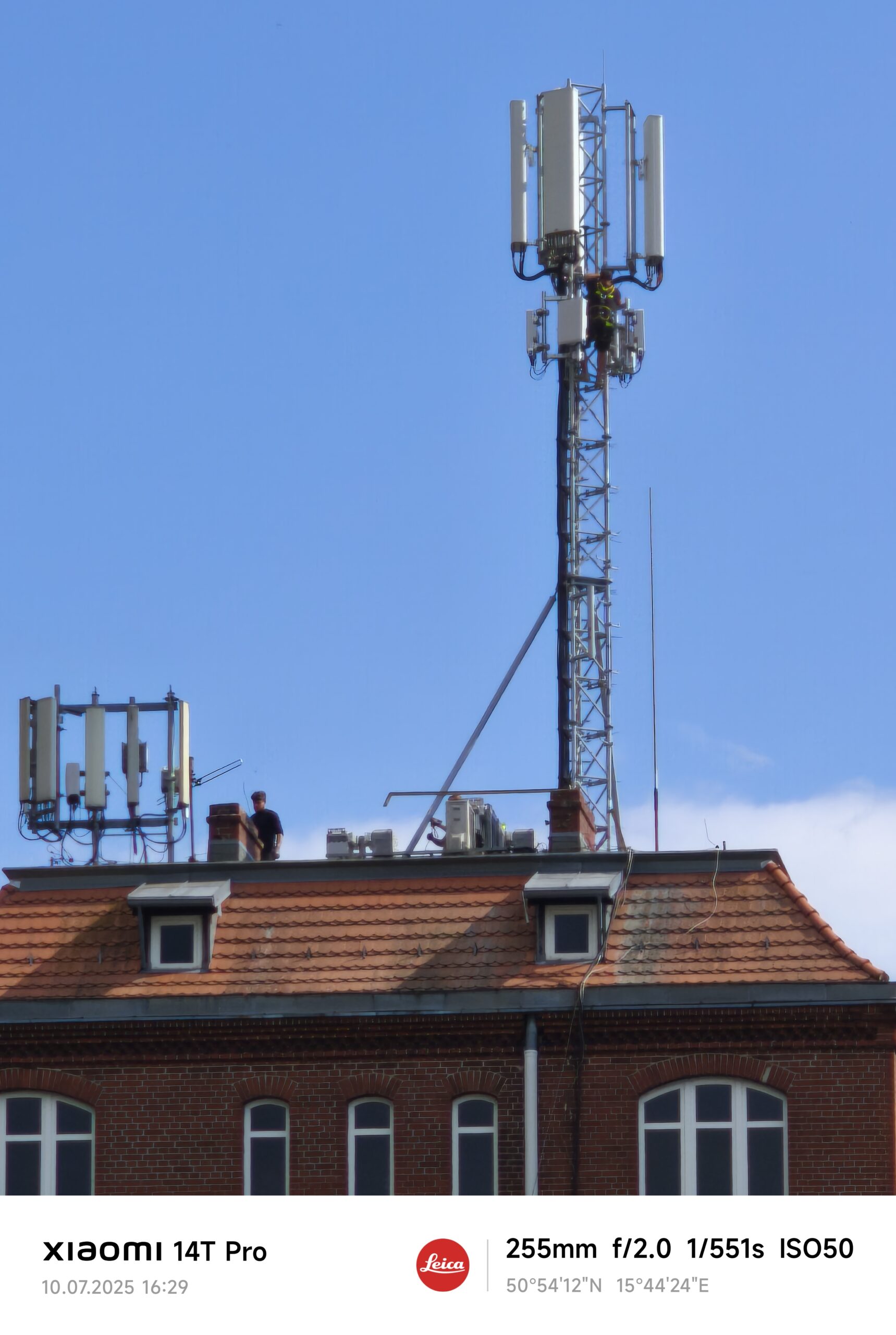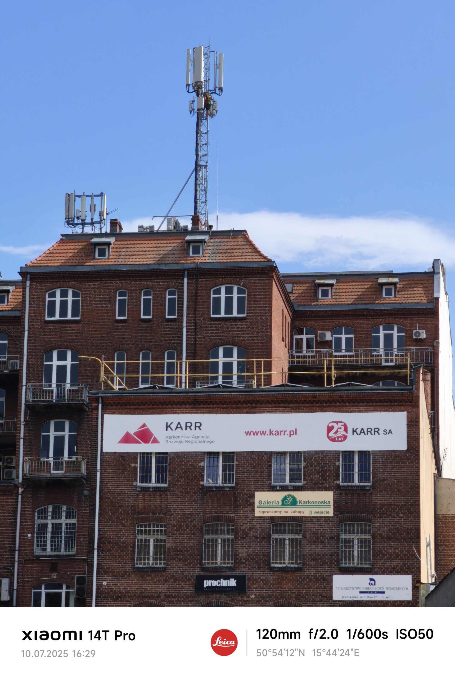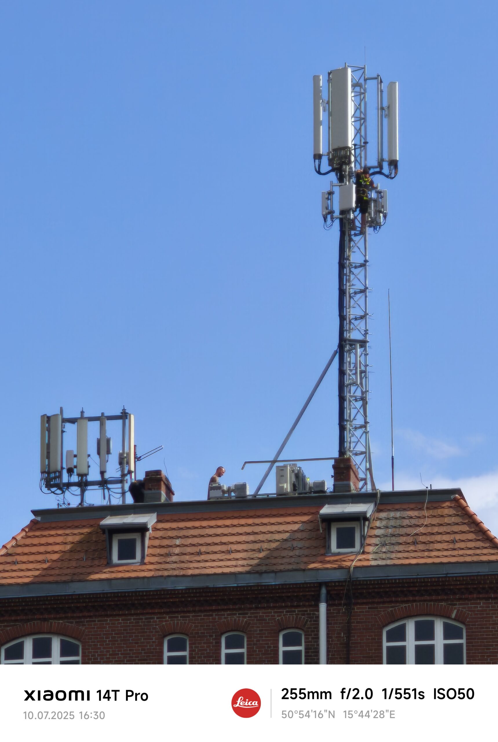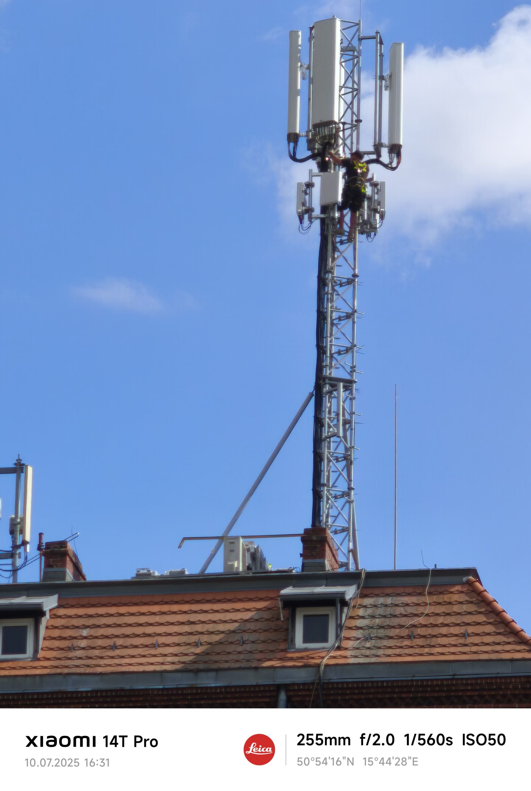 Dziś podwykonawca Orange realizował dalszy tok prac instalacyjnych w stacji bazowej przy ul. 1-go Maja 27, w śródmieściu Jeleniej Góry w ramach modernizacji i rozszerzenia do 5G band C. Choć prace miały się zakończyć dziś – prawdopodobnie będą jeszcze kontynuowane jutro, ponieważ instalatorów zastał po południu spory deszcz, co uniemożliwiło prowadzenie czynności.