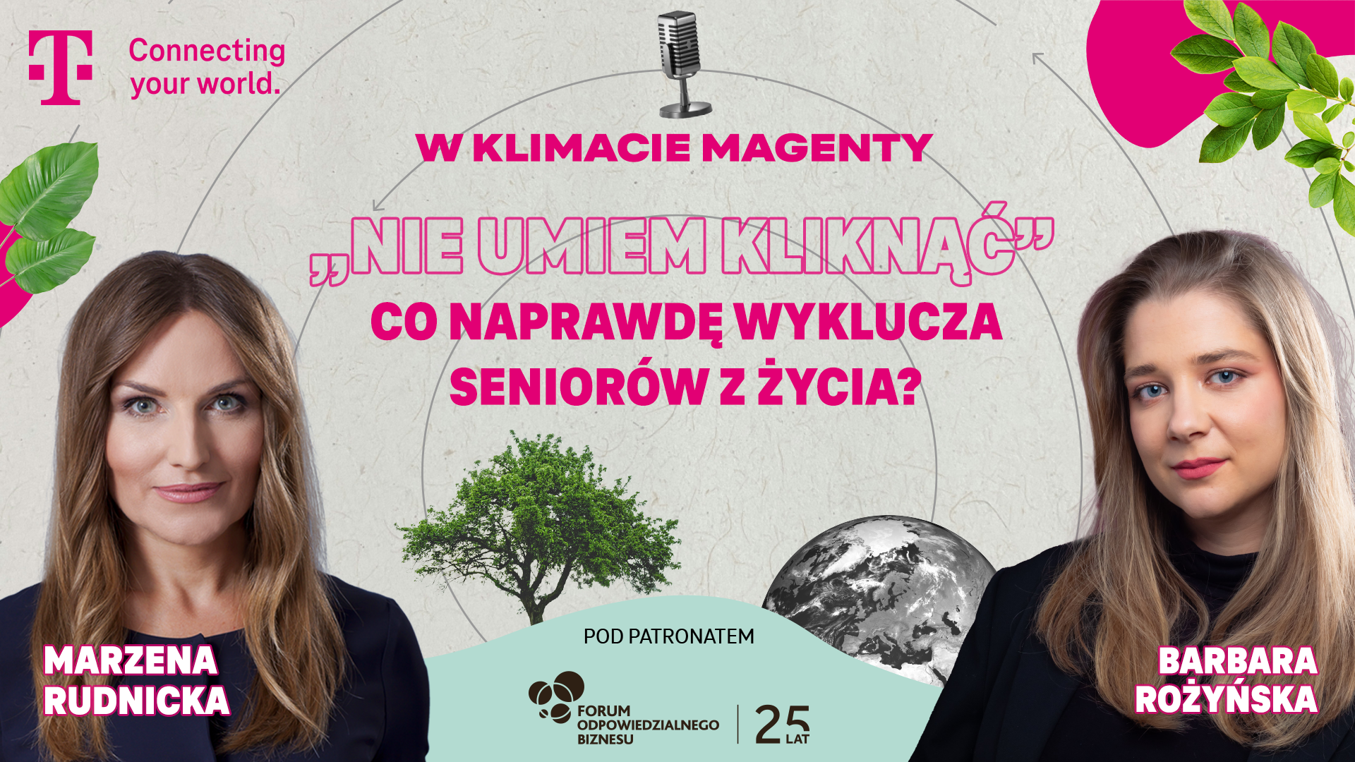 Czy da się rozmawiać o zrównoważonym rozwoju w prosty sposób? W T-Mobile udowadniamy, że tak, dlatego wystartowaliśmy z nowym, branżowym podcastem w tematyce ESG – „W klimacie Magenty”. To rozmowy o tym, jak odpowiedzialny biznes, nowe technologie i społeczne trendy zmieniają nasze życie, pracę i myślenie o przyszłości. Dla tych, którzy wierzą, że zmiana zaczyna się od rozmowy, ale nigdy się na niej nie kończy. Pierwsze odcinki dostępne są już na Spotify, Apple Podcast oraz na YouTube T-Mobile vlog. Podcast „W klimacie Magenty” to nowy format audiowizualny od T-Mobile, który porusza tematy ESG, technologii i odpowiedzialnego biznesu. Co miesiąc słuchacze mogą posłuchać rozmów z ekspertami, liderami zmian i praktykami, którzy łączą zrównoważony rozwój z codziennymi decyzjami i nowymi trendami. Wśród zaproszonych do pierwszych odcinków gości znaleźli się m.in. Aleksandra Stanek-Kowalczyk (Partnerka EY i Consulting Sustainability Leader), Angelika Witek (projektantka zrównoważonej mody i influencerka), Marzena Rudnicka, (Fundatorka Krajowego Instytutu Gospodarki Senioralnej i Prezeska SilverHub). Patronat nad podcastem objęło Forum Odpowiedzialnego Biznesu.