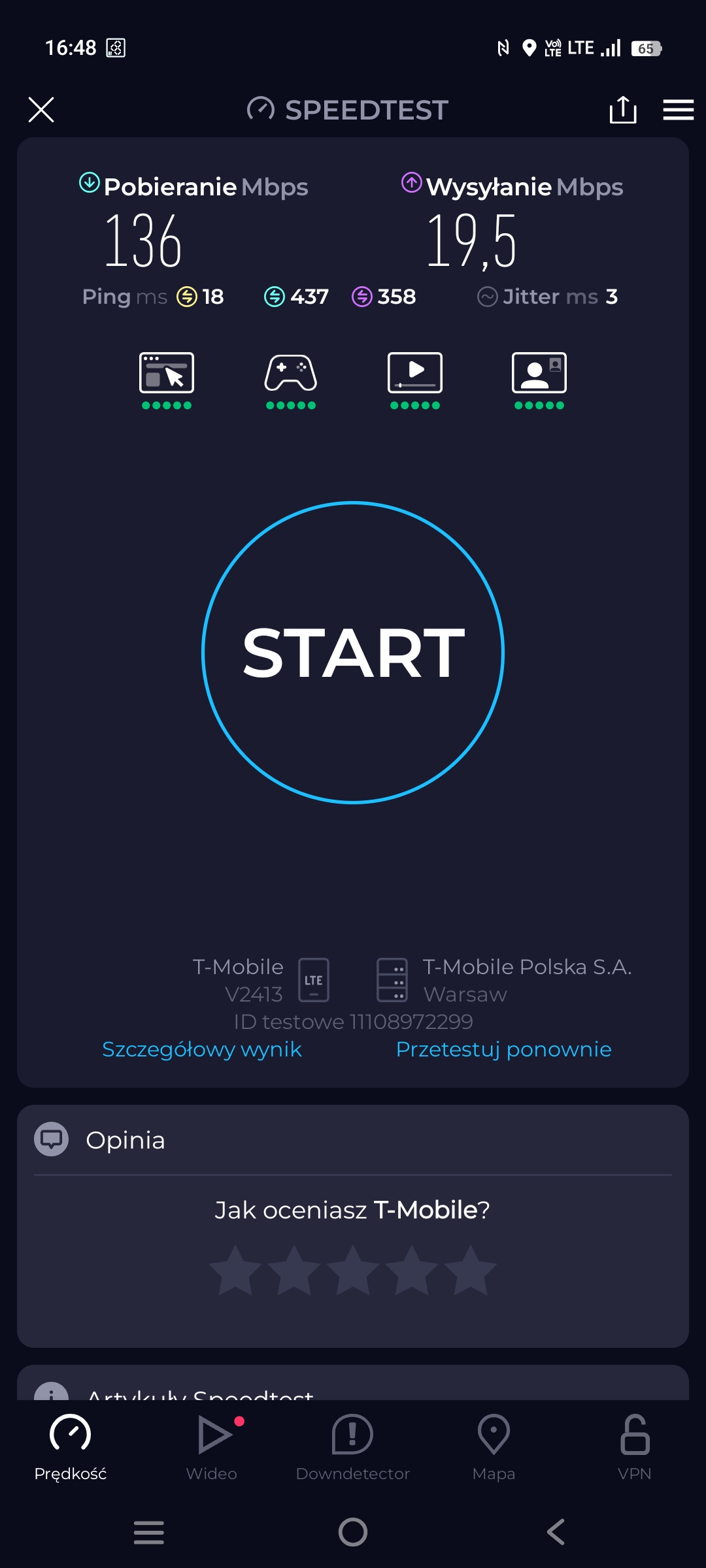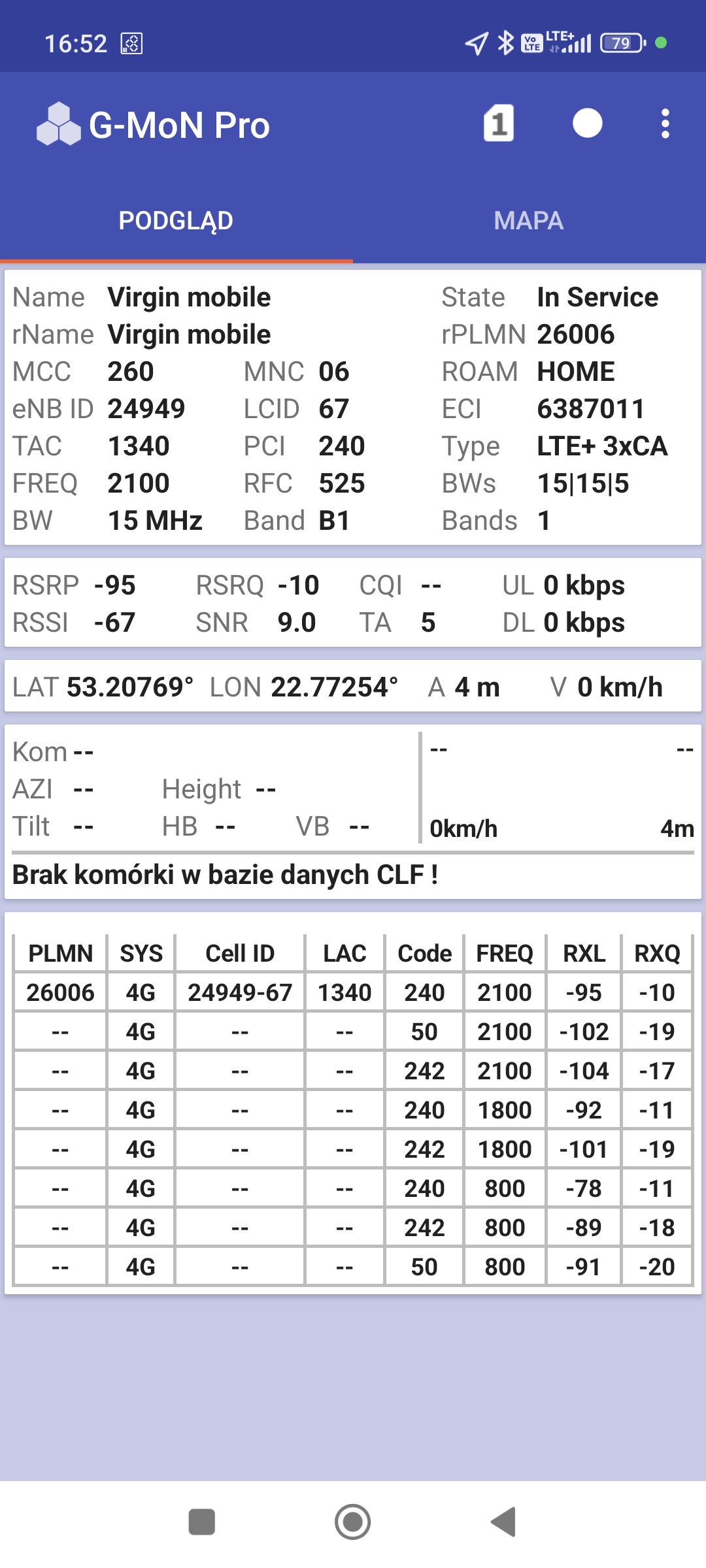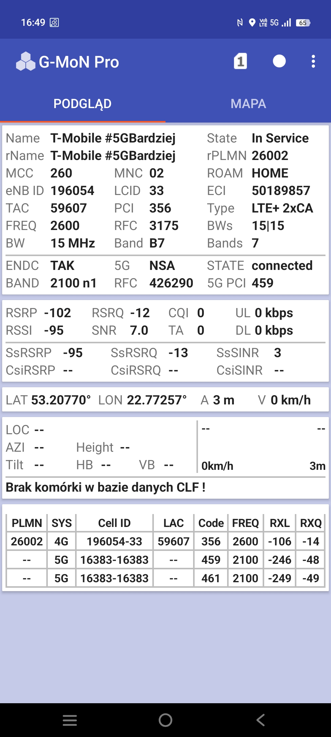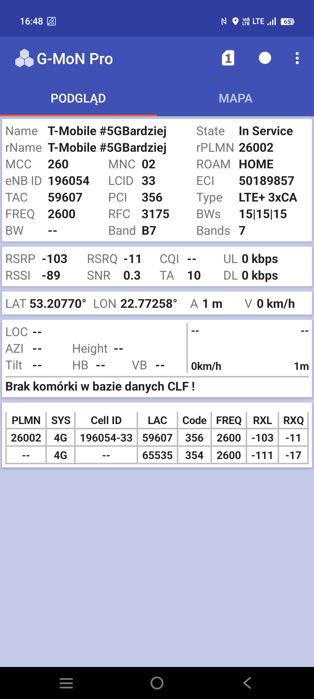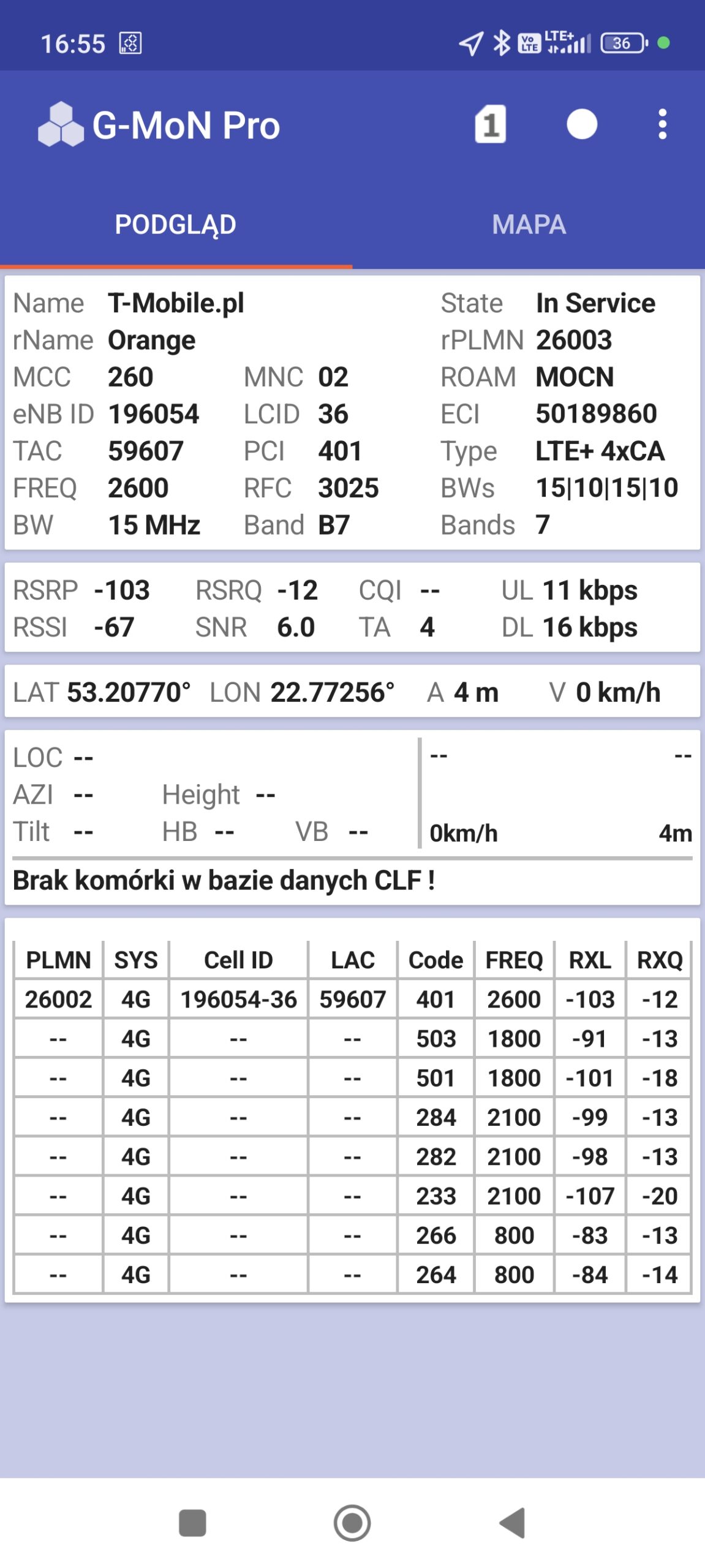 Z przykrością muszę stwierdzić, że powyższe testy prędkości są niemiarodajne i nie da się ich obiektywnie porównać. Testy są wykonywane na różnych telefonach, każdy z tych telefonów ma inne oprogramowanie modemu, nie wiadomo czy obsługują taki sam zestaw combo LTE-A, te same modulacje, te same kombinacje MIMO i CA. Nie wspominając już o rzeczach tak oczywistych jak różne wydajności zależne od różnic sprzętowych i OS. A to, że takie różnice w działaniu modemów mogą być sugeruje chociażby fakt, że na telefonie z kartą Orange mamy 4CA, a na telefonie z kartą T-mobile z tej samej stacji mamy tylko 3CA – zostało pominięte L1800.