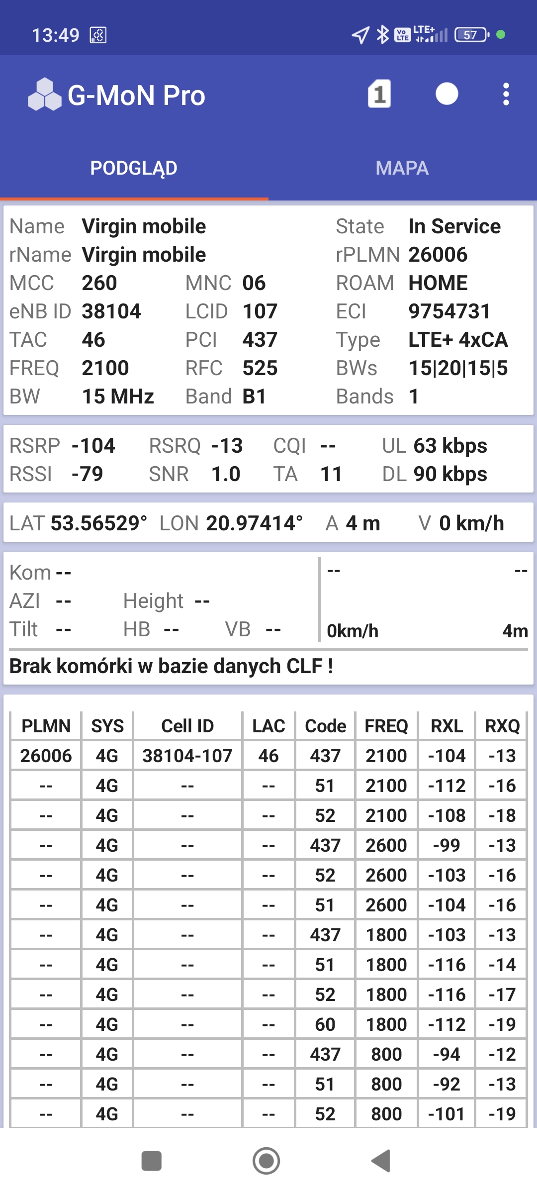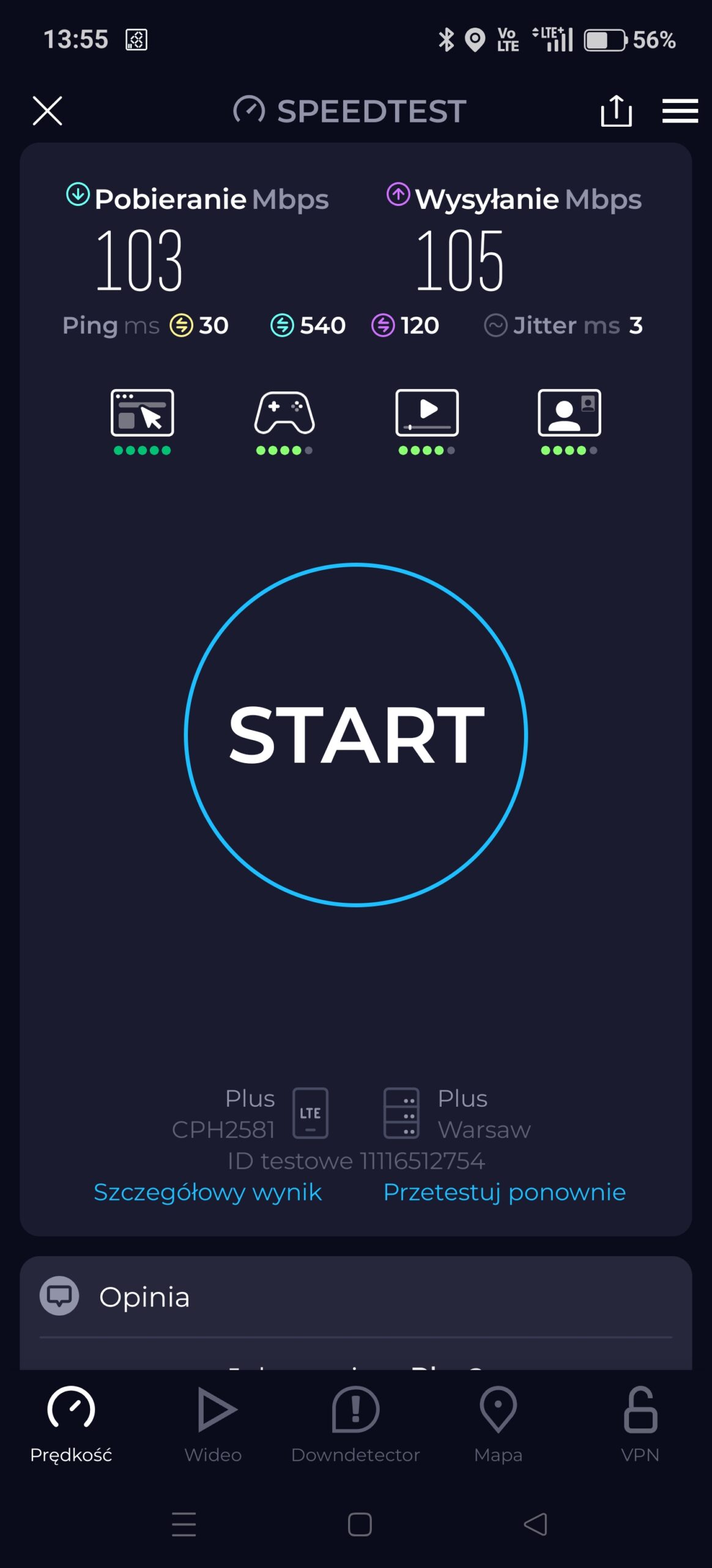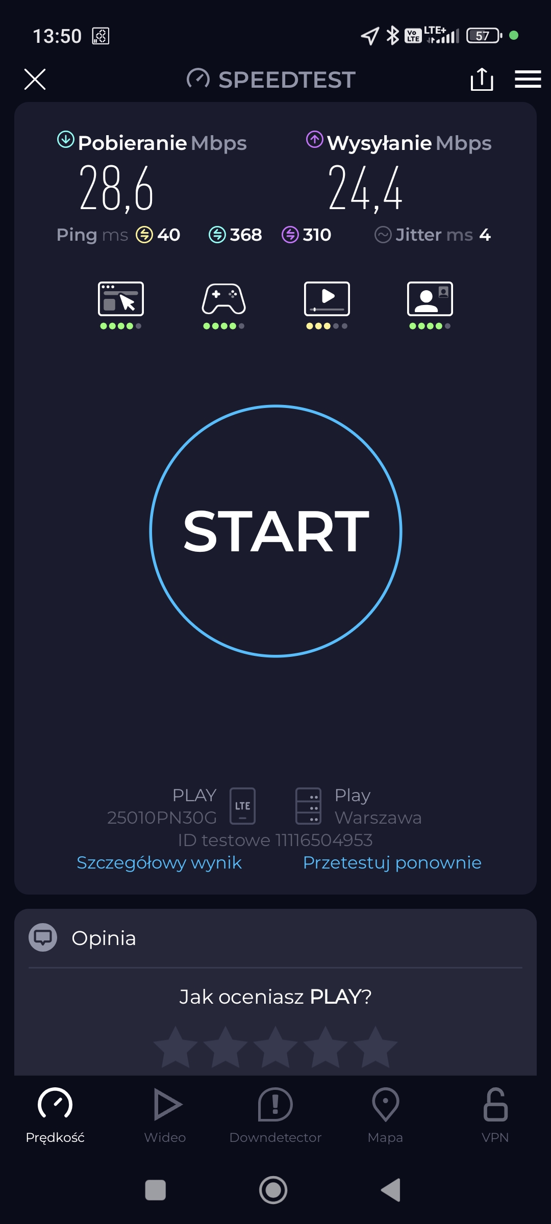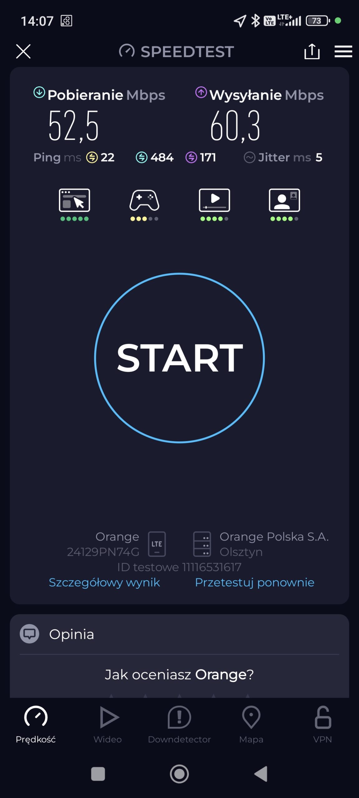 Prezentujemy jakość internetu mobilnego i sygnału sieci w losowym punkcie miasta Szczytno, w województwie warmińsko-mazurskim. Punkt testowy: sąsiedztwo McDonald’s przy ul. Pasymskiej 29B.