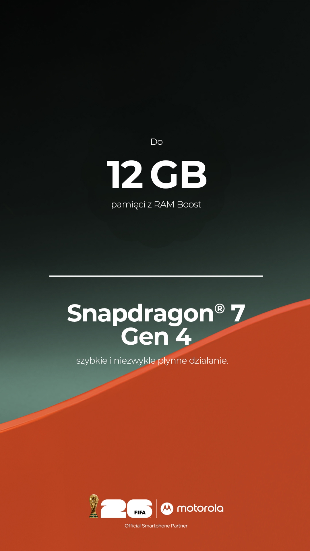 – dzięki procesorowi Snapdragon® 7 Gen 4, zaawansowanym opcjom AI, nawet 5 GB RAM z technologią RAM Boost i do 55 GB pamięci, smartfon zapewni błyskawiczną wydajność, doskonałą grafikę i mnóstwo miejsca na treści oraz kreacje.