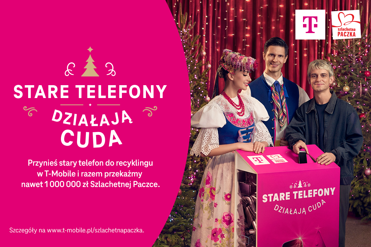 Już po raz trzeci T-Mobile i Szlachetna Paczka wspólnie udowadniają, że nawet coś tak niepozornego jak stary telefon może zmienić czyjeś życie. W najnowszej odsłonie kampanii „Stare Telefony Działają Cuda” każdy stary, niepotrzebny telefon oddany do recyklingu w salonach T-Mobile staje się symboliczną cegiełką – przyczyniając się do wsparcia osób  dotkniętych ubóstwem. Im więcej zebranych urządzeń, tym większą pomoc T-Mobile przekaże na rzecz Szlachetnej Paczki – nawet 1 000 000 zł. Ubóstwo często izoluje. Badania przeprowadzone przez Stowarzyszenie WIOSNA pokazują, że aż 74% podopiecznych Szlachetnej Paczki dzięki otrzymanej pomocy otworzyło się na relacje z innymi, a 62% zaczęło wychodzić z domu, uczestniczyć w różnych wydarzeniach i spotkaniach [1]. T-Mobile, jako marka, która przełamuje bariery w komunikacji, wspiera działania, które przywracają bliskość i nadzieję.