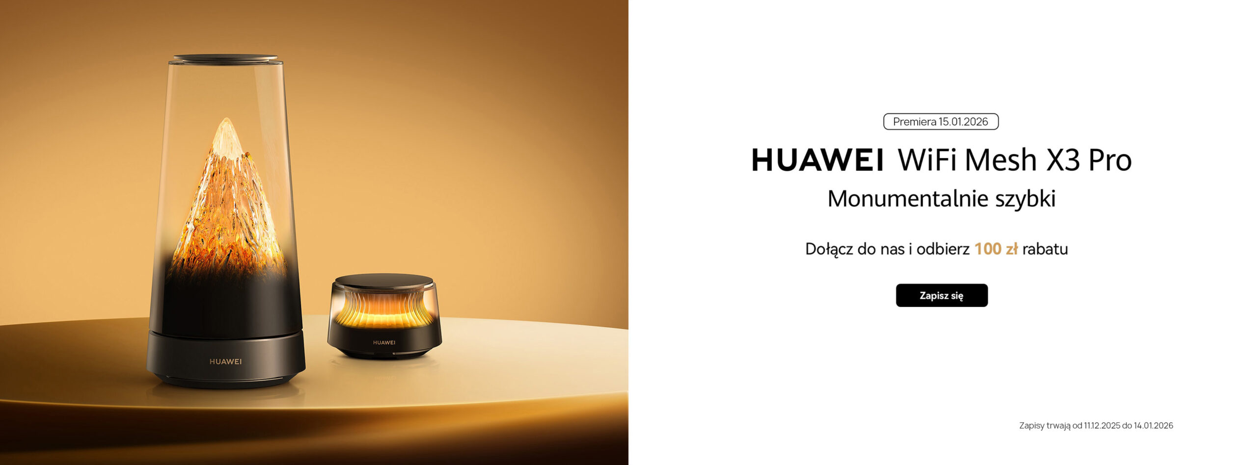 Dla osób, które chcą skorzystać z kuponu rabatowego na HUAWEI WiFi Mesh X3 Pro, przygotowano oddzielny link do zapisania się do newslettera, co należy uczynić do 14 stycznia 2026 r.: