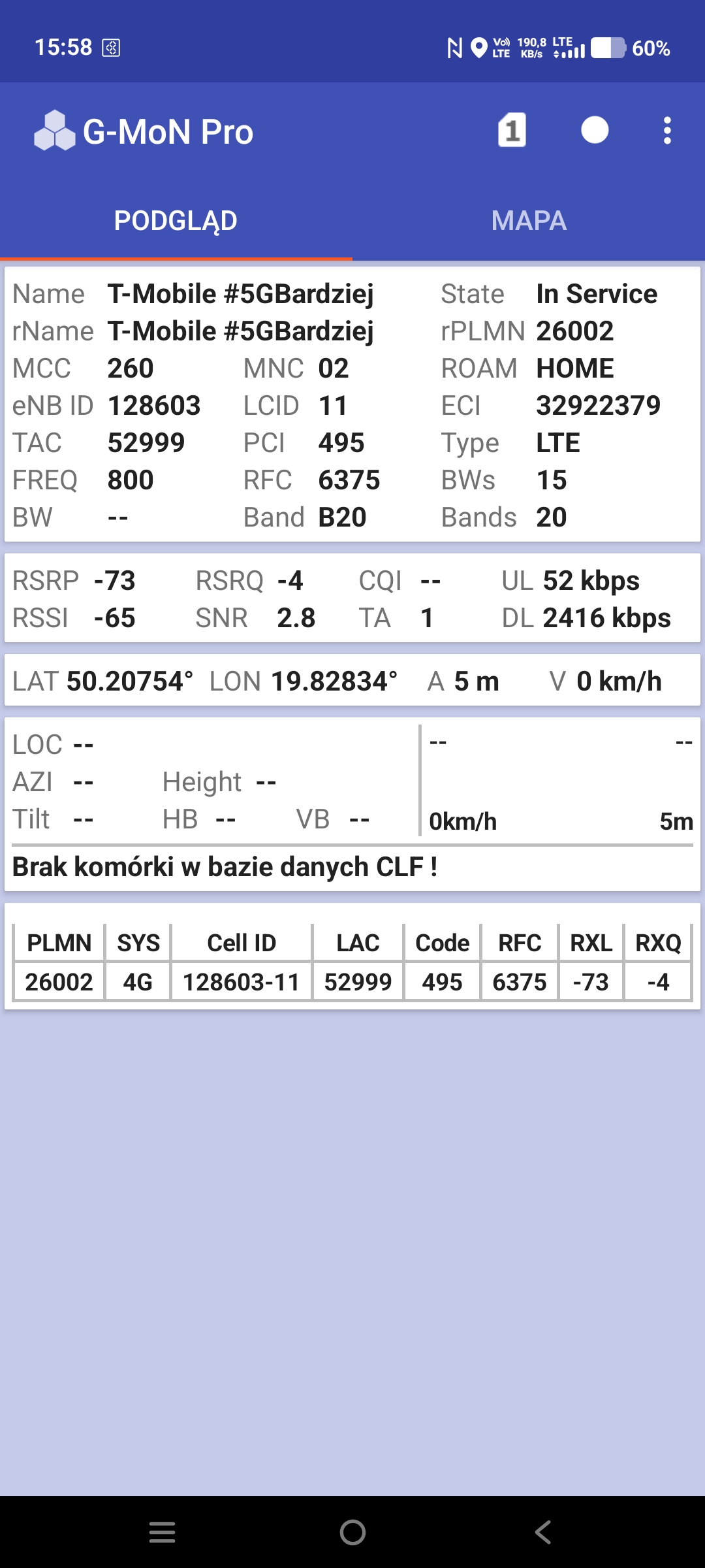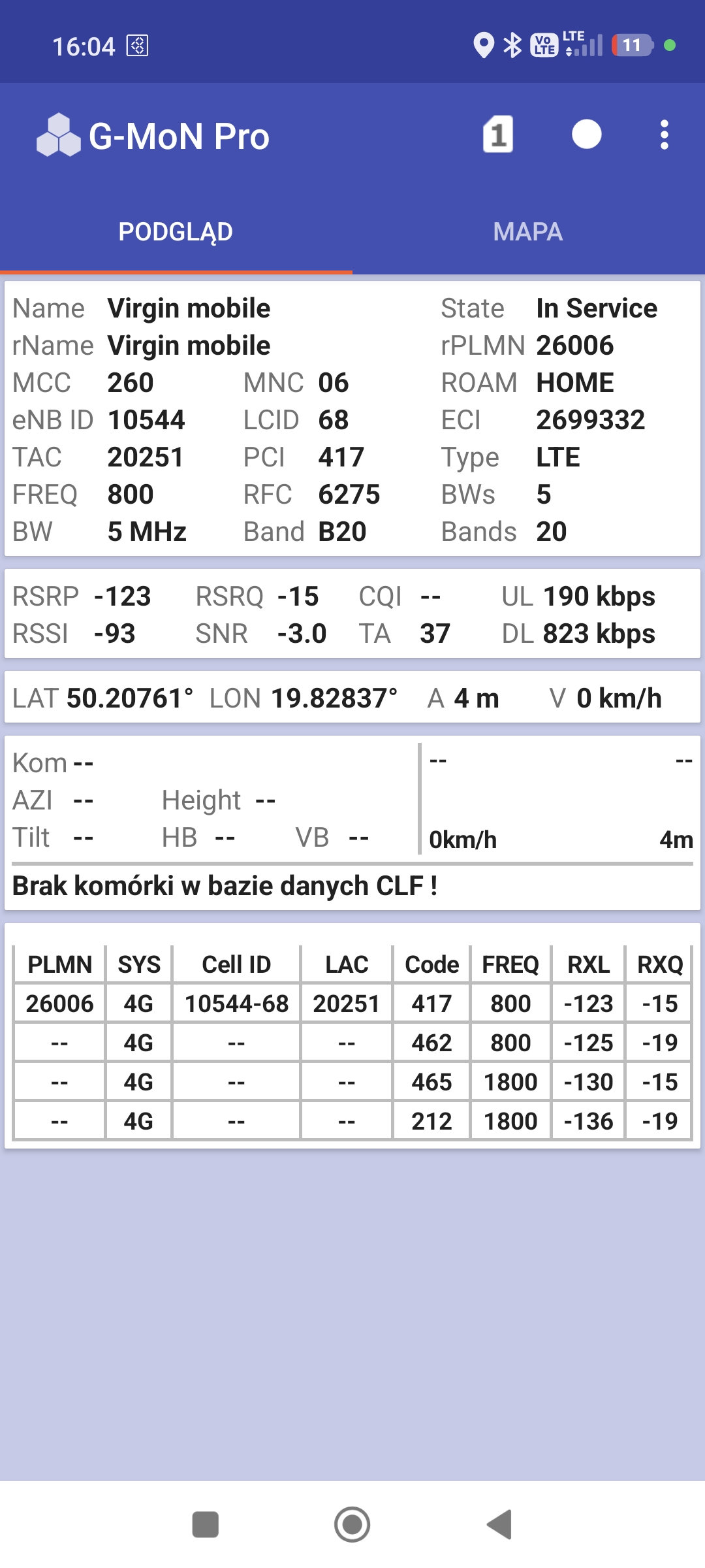 Na zdjęciach przedstawiona jest stacja Play z dosyłem satelitarnym , według wykazu Si2pem z 3G 900. Stacja T-mobile to antena dookólna z 800 i 900 Mhz zamontowana kilka budynków obok.