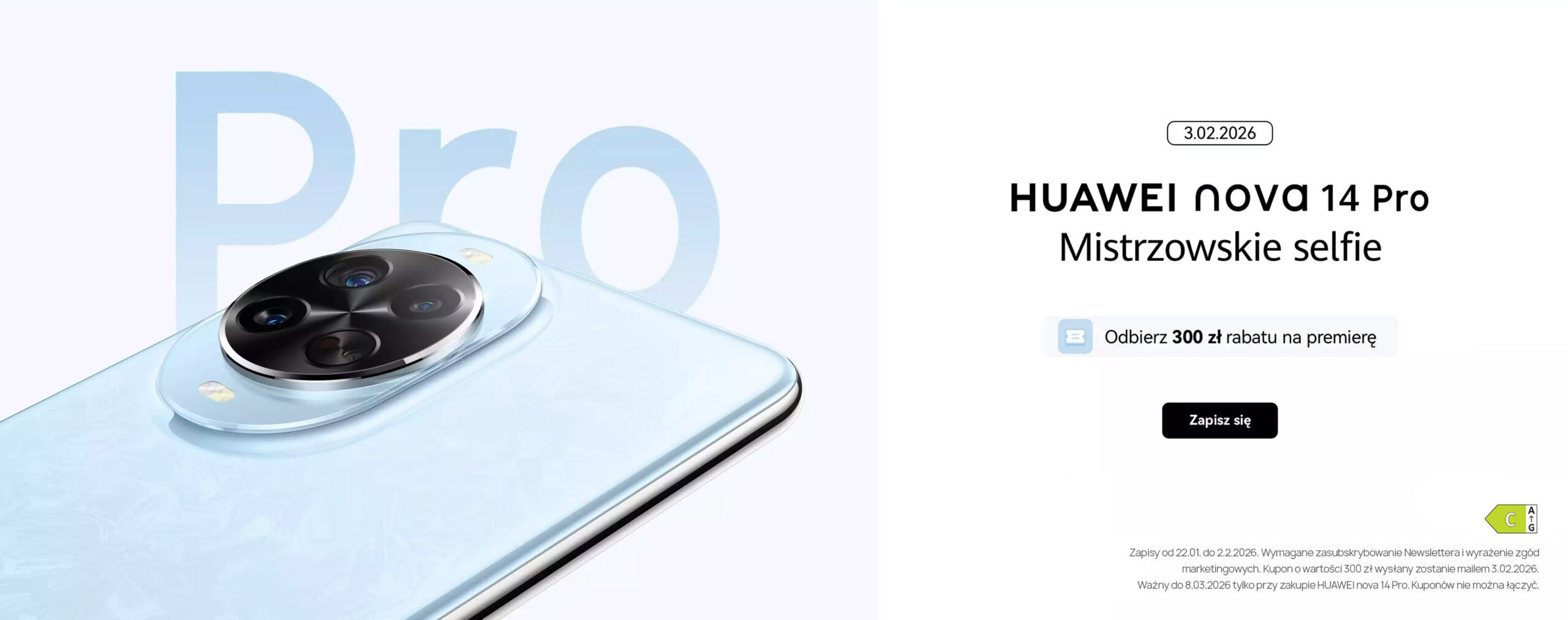 Każdy z kuponów rabatowych zostanie przesłany mailowo w dniu premiery produktów, 3 lutego, i będzie można go wykorzystać do 8 marca 2026 r. Kod uprawniający do obniżenia ceny zostanie naliczony przed dokonaniem zakupu, w koszyku kupującego. Kupony nie łączą się ze sobą ani z innymi kodami rabatowymi. Szczegółowe informacje dostępne są na huawei.pl.