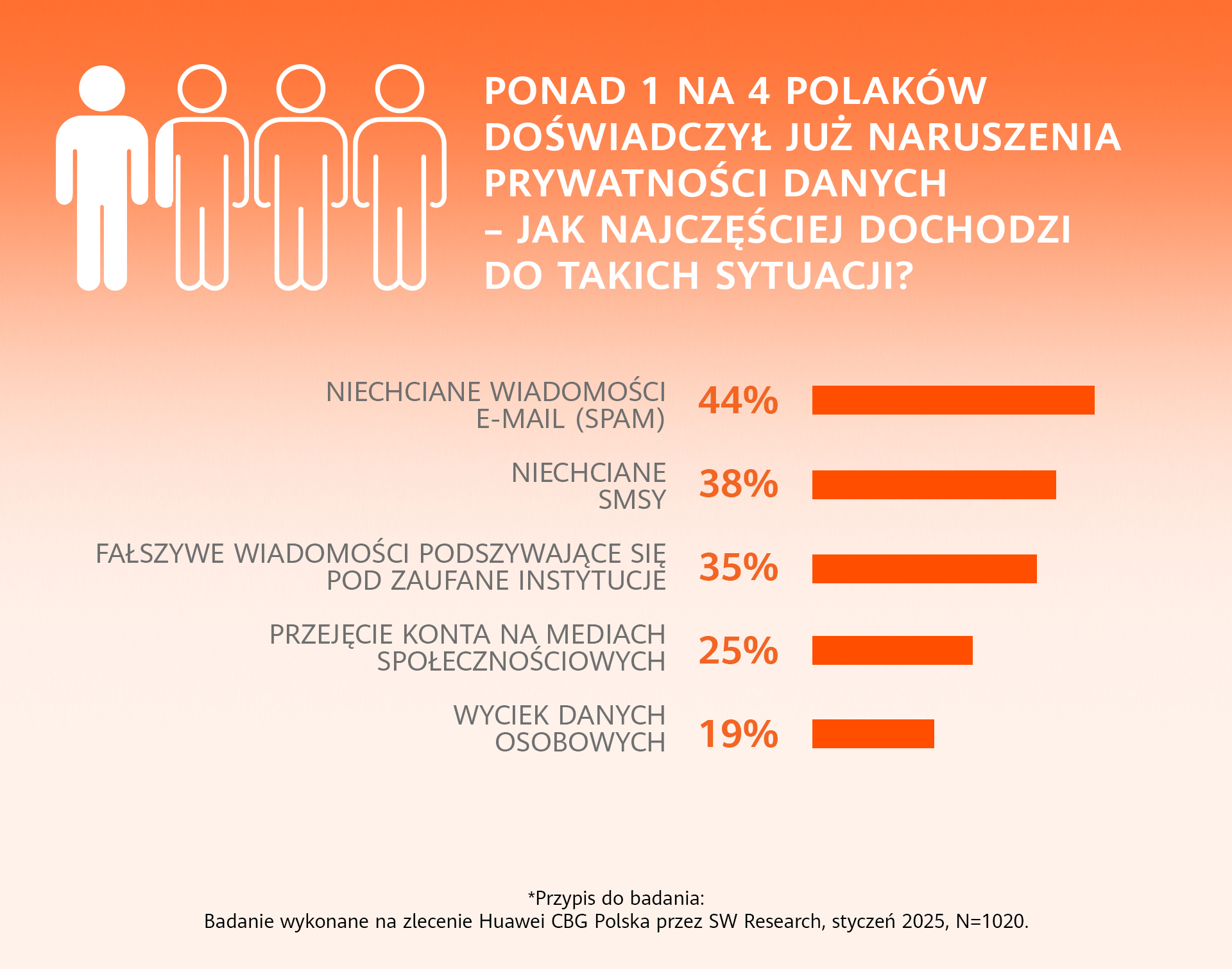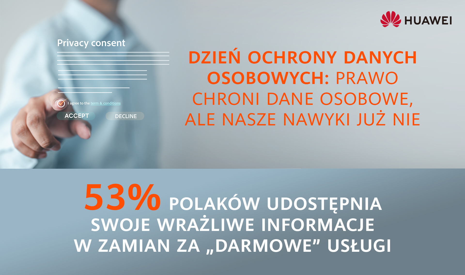Warszawa, 27 stycznia 2026 r. – Przypadający na 28 stycznia Dzień Ochrony Danych Osobowych to dobra okazja, aby przyjrzeć się temu, czy Polacy rzeczywiście chronią swoją prywatność. Wśród otaczającej nas, wszechobecnej technologii łatwo jest zapomnieć, że urządzenia, z których korzystamy na co dzień, są także nośnikami wrażliwych informacji. Tymczasem z badania Huawei CBG Polska wynika, że po zakupie smartfona, tabletu czy laptopa jedynie 18% użytkowników zawsze konfiguruje ustawienia prywatności, 33% robi to rzadko, a 9% wcale [i]. Co więcej, co piąty Polak (21%) zabezpiecza swoje urządzenie dopiero wtedy, gdy – w jego ocenie – znajdują się na nim „ważne dane”. Nie bez przyczyny już ponad co czwarty z nas (28%) padł ofiarą naruszenia prywatności wrażliwych informacji. Dzień Ochrony Danych Osobowych upamiętnia podpisanie pierwszego prawnie wiążącego instrumentu międzynarodowego chroniącego prywatność w erze cyfrowej. W praktyce jednak ochrona danych osobowych nie sprowadza się wyłącznie do regulacji prawnych, ale do codziennych decyzji i nawyków użytkowników. Smartfony, laptopy czy tablety towarzyszą nam niemal na każdym kroku – to sprawia, że są jednym z najbogatszych źródeł informacji o nas samych i naszych bliskich.