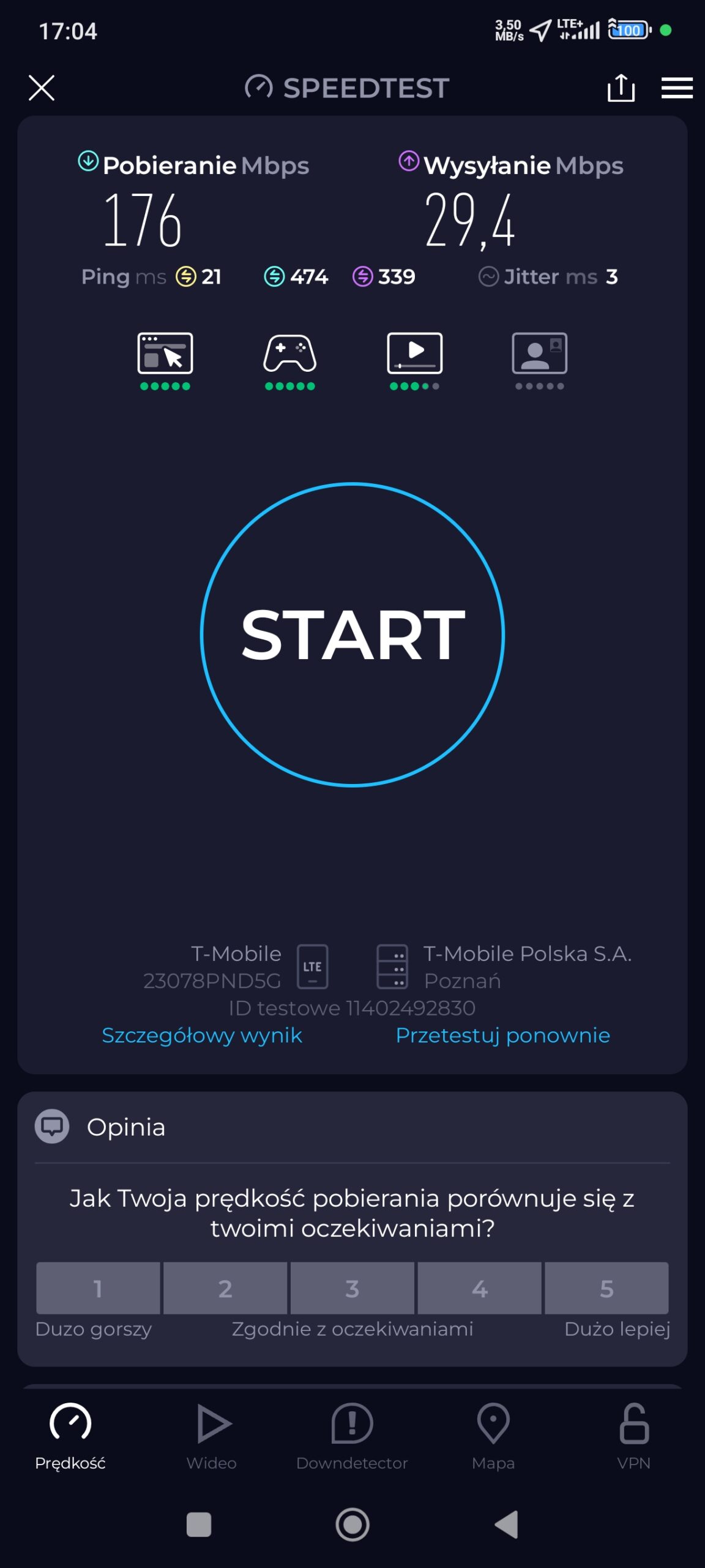 Testy sieci dla T-Mobile w segmencie LTE i 5G DSS poniżej.