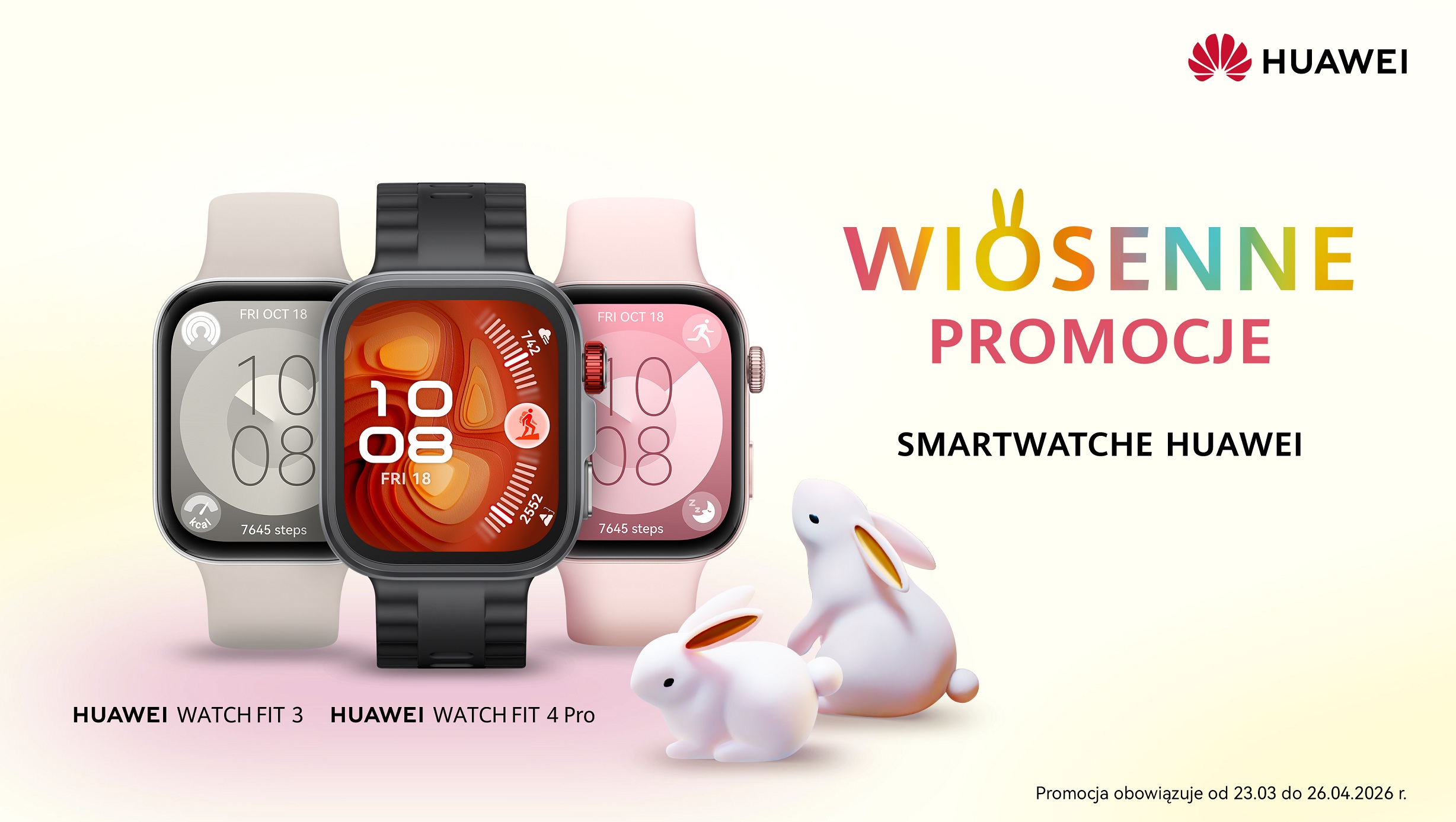 Warszawa, 23 marca 2026 r. – Zbliża się Wielkanoc, która jest świetną okazją do obdarowania najbliższych wyjątkowymi wiosennymi prezentami. Z tej okazji przygotowano ofertę na wybrane smartwatche i słuchawki Huawei, które uprzyjemnią wiosenne aktywności i wspólne spędzanie czasu. Można z niej skorzystać w sklepach sieci Media Expert, Media Markt, RTV Euro AGD, x-kom, Neonet i Komputronik, w oficjalnej Strefie Marki na Allegro oraz na huawei.pl. Oferta trwa do 26 kwietnia 2026 roku lub do wyczerpania zapasów.