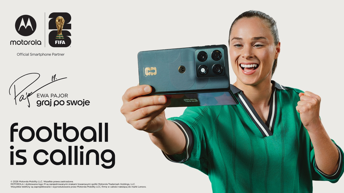 Warszawa, 13 kwietnia 2026 r. – Motorola ogłasza nawiązanie dwuletniej współpracy z Ewą Pajor. Sportsmenka została ambasadorką marki, a jej historia stała się fundamentem dla platformy komunikacyjnej „Graj po swoje”. Ewa to jedna z najlepszych piłkarek świata i kapitanka reprezentacji Polski, która prowadzi kadrę w walce o awans do Mistrzostw Świata w Brazylii. Jej determinacja, skuteczność i charyzma sprawiają, że jest nie tylko liderką na boisku, ale także ważną ambasadorką polskiego sportu. Partnerstwo obejmuje szeroko zakrojone działania w mediach i kanałach społecznościowych, a także obecność marki w autorskich inicjatywach sportowych Ewy. Sportsmenka będzie również brała udział w wydarzeniach oraz projektach organizowanych przez markę Motorola. – Idea „Graj po swoje” jest dla mnie zielonym światłem, które pozwala podążać własną drogą, rozwijać pasję, realizować marzenia i wyrażać siebie. Wspólnie z Motorolą chcemy wytyczać własne szlaki, pokazując, że pasja, miłość i odwaga mogą zaprowadzić Cię w miejsce, o którym dziś nawet nie marzysz – powiedziała Ewa Pajor.
