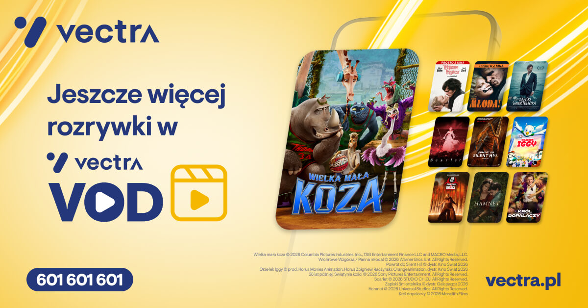 Vectra przedłuża umowę z Sony Pictures Television (SPT) i jednocześnie wzmacnia ofertę VOD. W bibliotece operatora pojawia się specjalne „okno premium”, które skraca czas oczekiwania na kinowe nowości od SPT z 3 miesięcy do nawet 45 dni. Dodatkowo, w kwietniu oferta serwisu znacząco się poszerza – klienci Vectry oraz użytkownicy telewizji streamingowej tvsmart.pl zyskają dostęp do ponad pięćdziesięciu nowości. Rozszerzenie współpracy z Sony Pictures Television to kolejny krok w budowaniu przez Vectrę jednej z najbogatszych ofert treści na żądanie na rynku. Operator konsekwentnie rozbudowuje swoje portfolio, docierając do coraz szerszego grona odbiorców. W ostatnich miesiącach do oferty dołączyły nowe programy m.in. AMC, Mixtape, Polsat Viasat Explore, Crime+Investigation Polsat, Dolce Vita TV oraz Daystar, a pod koniec ubiegłego roku wybrani klienci zyskali bezpłatny dostęp do BBC Player z ponad 1000 godzin filmów i seriali. Dzięki przedłużeniu współpracy z Sony, Vectra zwiększy ilość premier amerykańskiego dystrybutora w VOD i skróci czas dostępu do nich nawet o połowę. Pierwsze efekty współpracy z Sony Pictures Television można zobaczyć już teraz. 14 kwietnia do Vectra VOD trafiła animacja „Wielka Mała Koza” – historia małej kozy, która trafia do świata „rykokosza” i musi udowodnić swoją wartość na niebezpiecznych arenach.